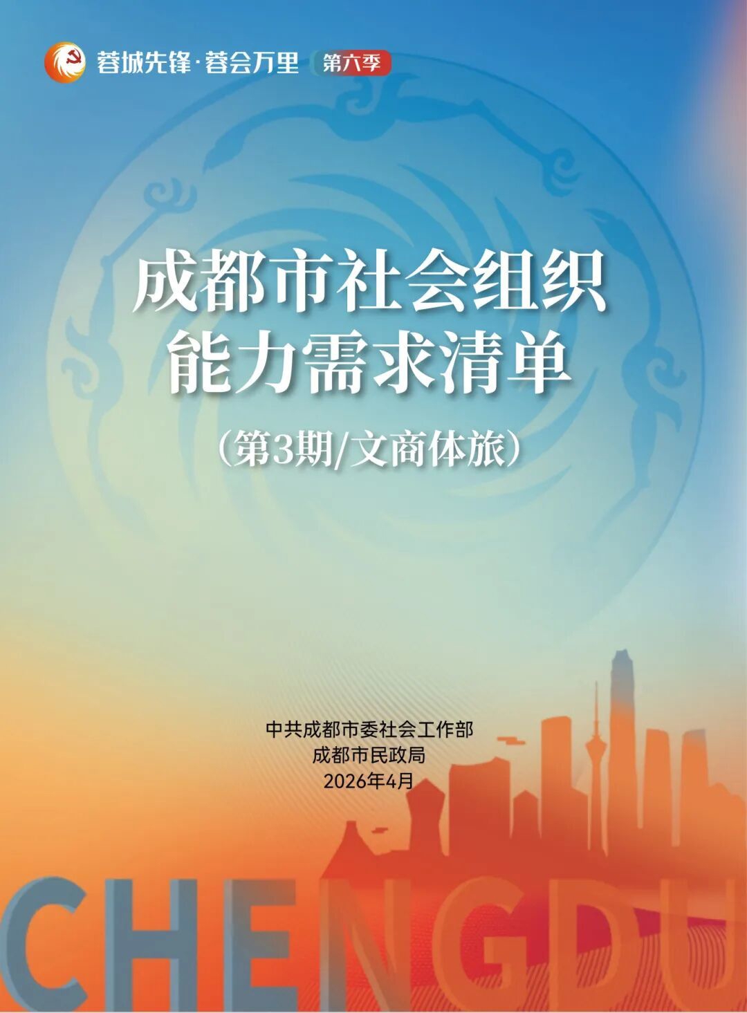 活动现场,成都市委社会工作部、成都市民政局联合发布《成都市社会组织能力需求清单(第三期)》。推出“社会组织能提供什么”和“社会组织需要什么”两类信息,共计170条信息,涵盖23家文商旅体领域社会组织,为政府、企业、园区按图索骥、精准合作提供便利。