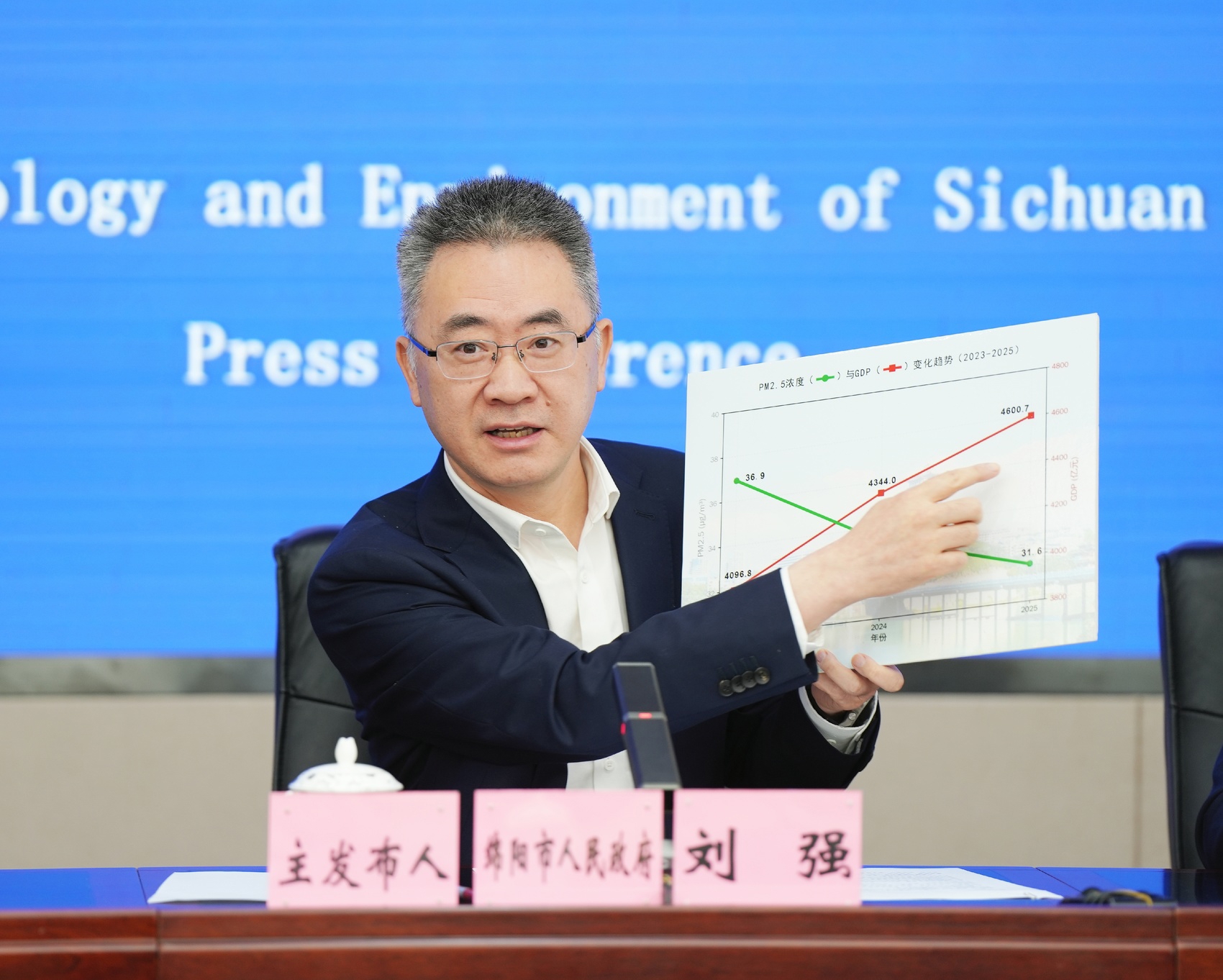 “一升一降之间,充分说明了我们在大气治理取得成效的同时,也有力地支撑了高质量发展。”4月28日,在四川省生态环境厅新闻发布会上,绵阳市副市长刘强用一升一降的两条弧线,清晰呈现了生态保护与经济发展协同并进的成效。