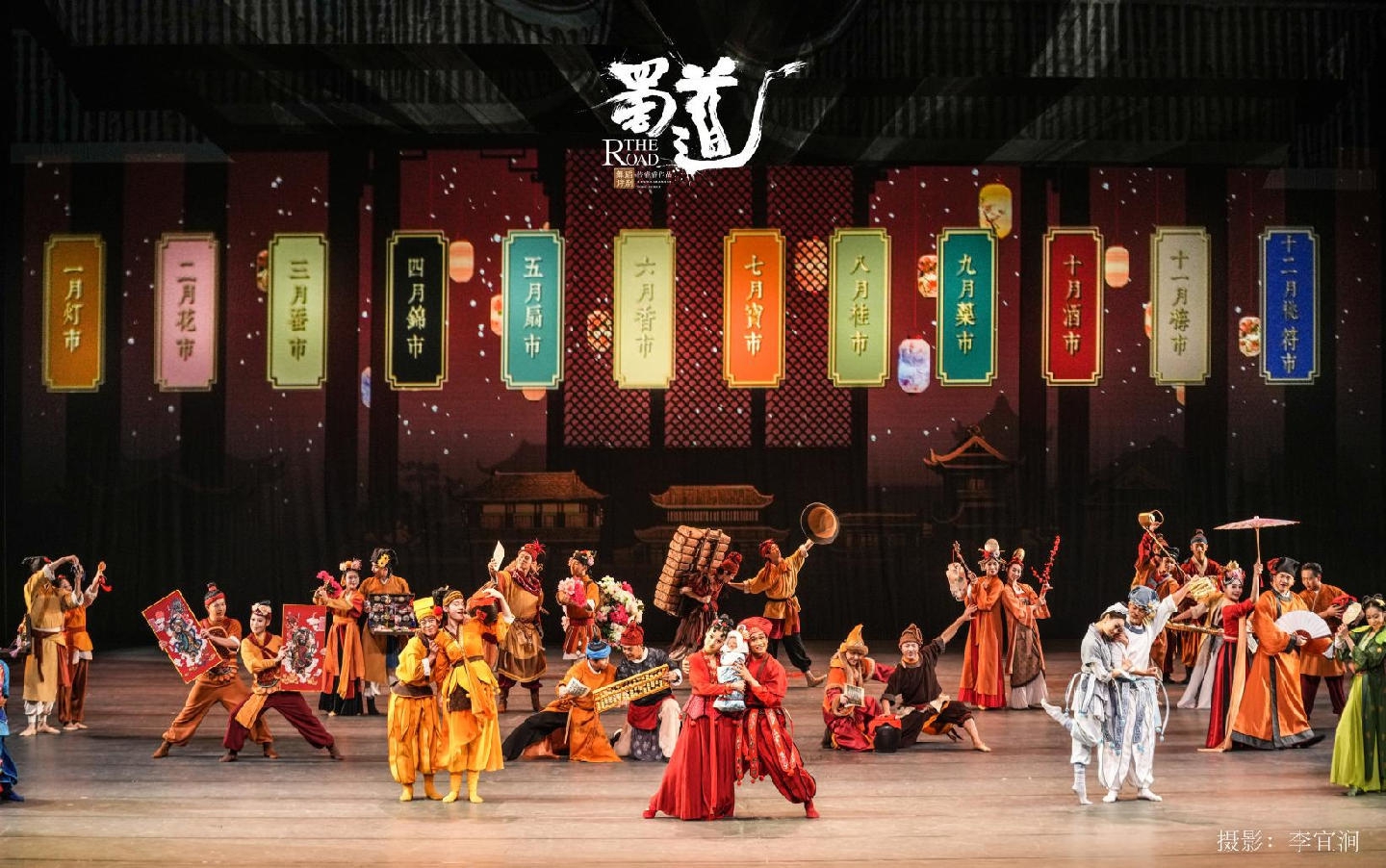 四川省歌舞剧院出品的舞蹈诗剧《蜀道》,通过诗、舞、剧的艺术呈现,将蜀道从地理通道的现实作用升华为铸牢中华民族共同体意识的精神纽带。全剧以“五丁开道”的远古传说为序,串联起李冰治水的智慧结晶、文翁兴学的文化传承,经剑门关的险峻雄关、翠云廊的苍劲古柏,直至十二月市的市井烟火……以古今之道的时空对话,梳理蜀道千年文化脉络,勾勒出一幅从先秦至当代巴蜀大地上汉、藏、羌、彝等多民族交融共生的历史画卷,生动演绎了巴蜀儿女坚韧不拔、开拓进取、团结奋斗的民族精神。
