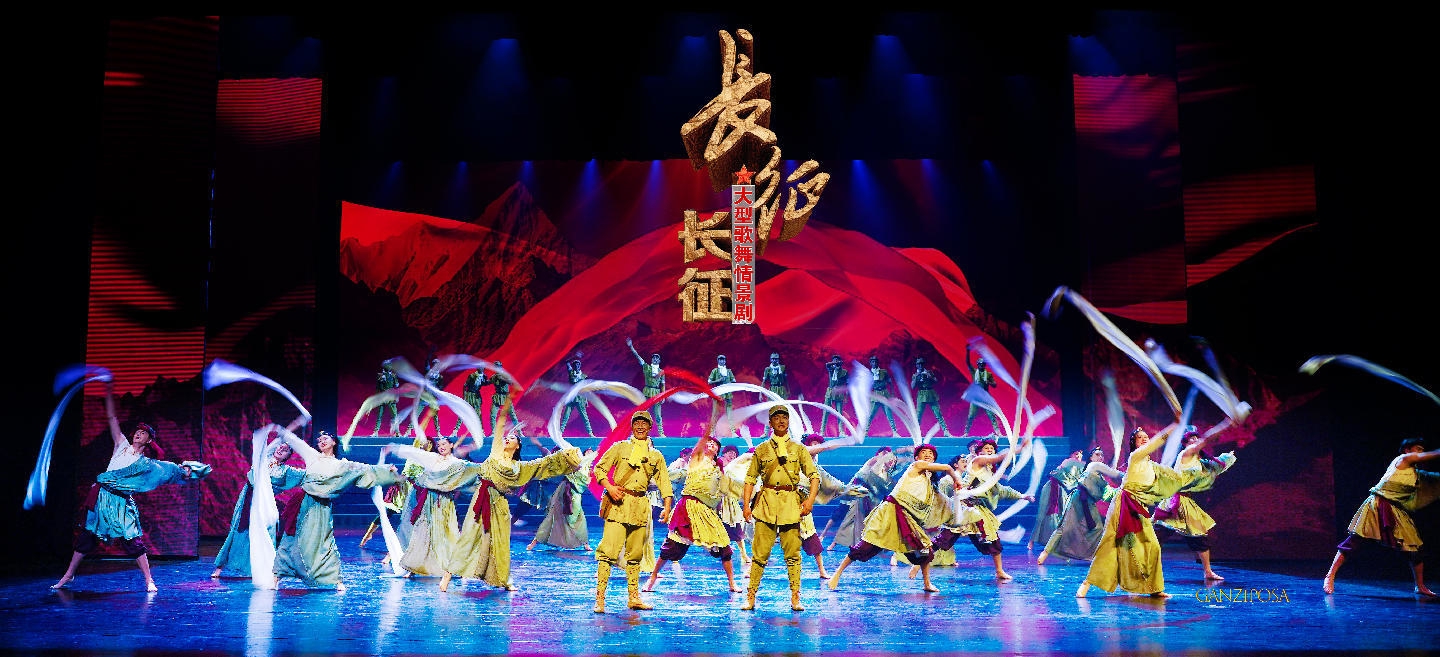 《长征长征》由甘孜州民族歌舞团创排演出,是一部以铸牢中华民族共同体意识为核心主题的大型红色歌舞剧。该剧以长征精神为主线,沿着历史的脉络,通过艺术形式深情再现甘孜地区在中国共产党领导下,从红军长征、十八军进藏、改革开放到新时代乡村振兴的辉煌历程,生动展现各族儿女血脉相承、手足相亲、守望相助的家国情怀,激励每一位奋斗者昂首挺胸走好新时代长征之路。剧目融合甘孜踢踏、巴塘弦子等非物质文化遗产元素,综合运用音乐、舞蹈、诗歌等多元艺术形式,从民族文化中提炼出蕴含的共同中华文化底蕴,凸显了中华文化的包容性与多样性。