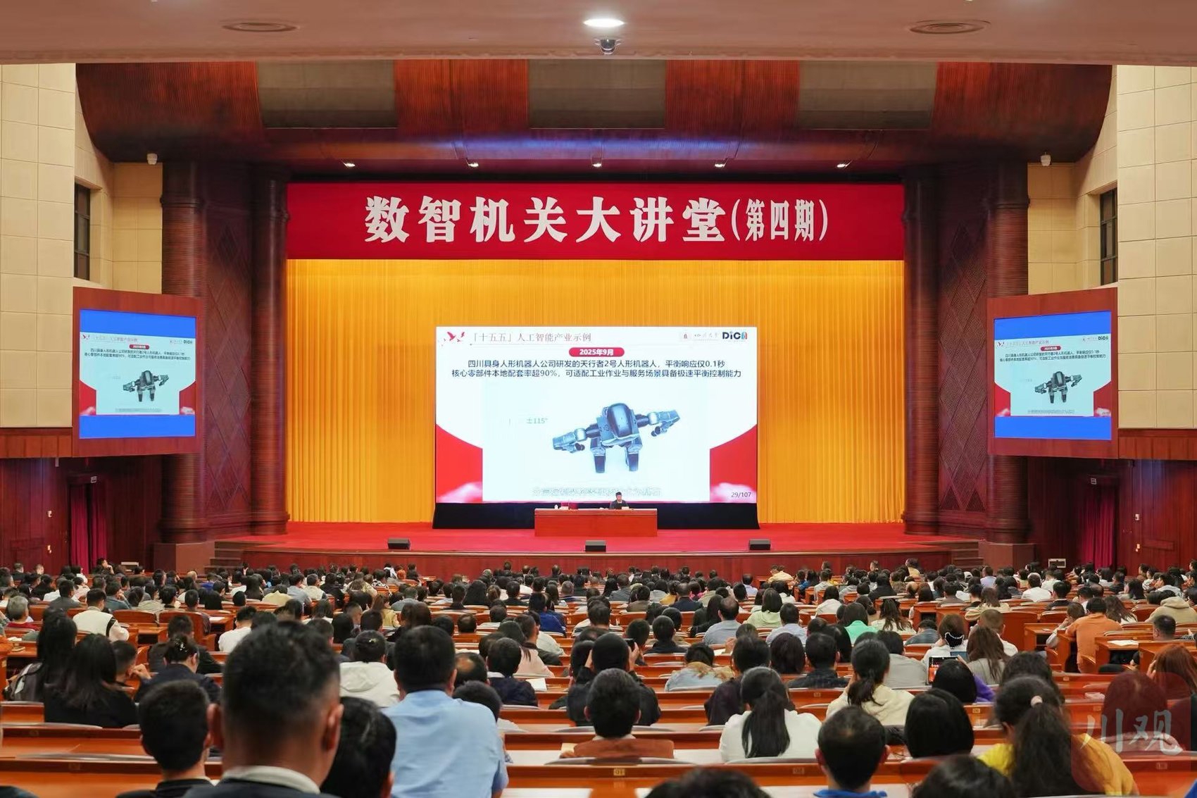 继2025年举办“提升省直单位干部职工应用AI人工智能能力系列讲座”,集中培训4000余人次后,今年,四川省直机关再次启动人工智能应用学习培训。4月28日下午,由省委省直机关工委主办的“数智机关大讲堂”在锦江大礼堂开讲。省直部门(单位)的1200余名干部职工齐聚一堂,共同踏上AI赋能学习之旅。