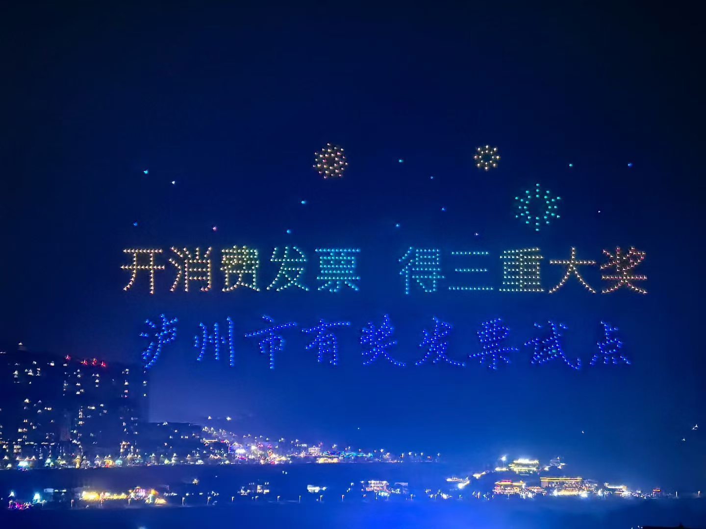 无人机宣传有奖发票试点活动。泸州市商务和会展局供图