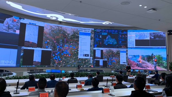 在成都市网络理政中心电子大屏上,成都“森林火灾监控扑救指挥系统”让火灾现场的燃烧态势、气象预报信息和小气候环境信息等关键信息一目了然。这套系统还能够根据气象预报信息、现场环境监测信息等情报,分析火灾30分钟、1小时、2小时的燃烧蔓延趋势,标注危险源位置,划定避险安全区域,为现场指挥决策提供情报支撑。