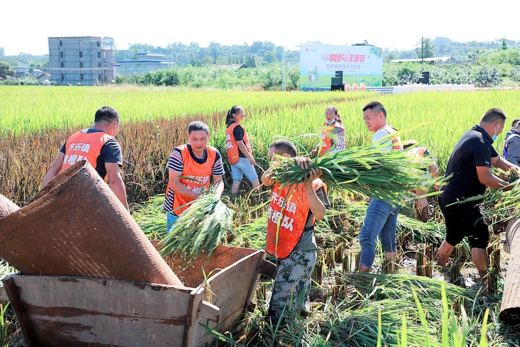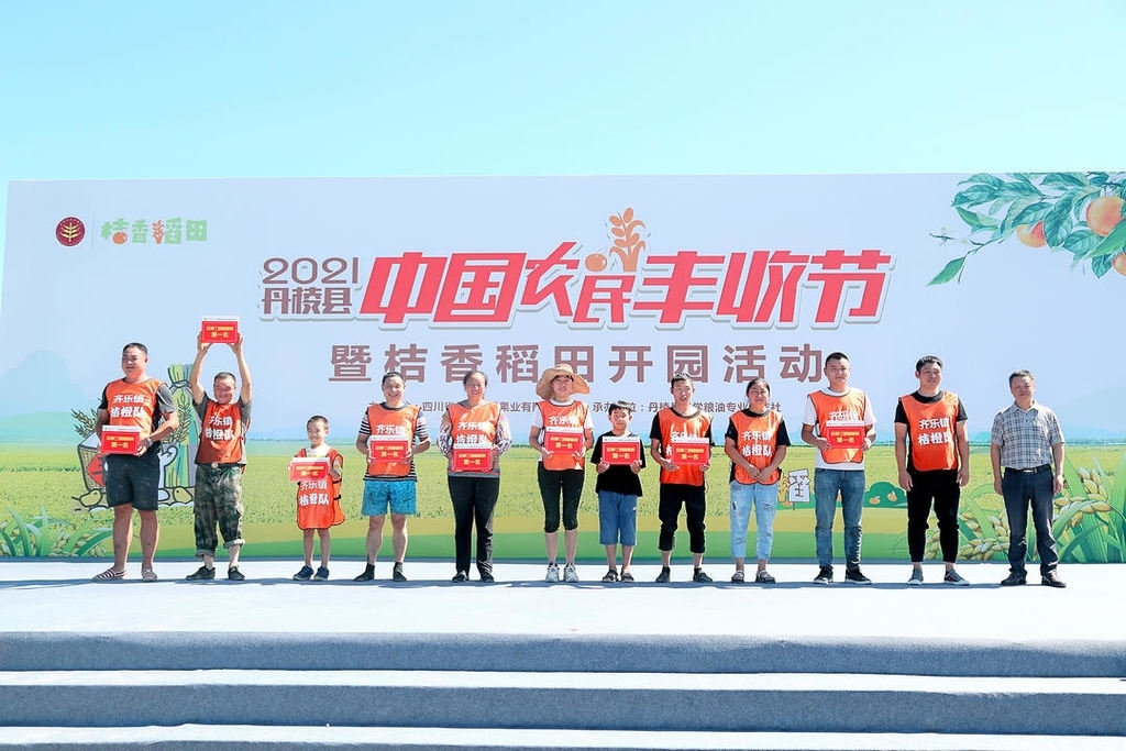 图为在丹棱县科学粮油专合社基地里举行的农民丰收节庆祝活动现场