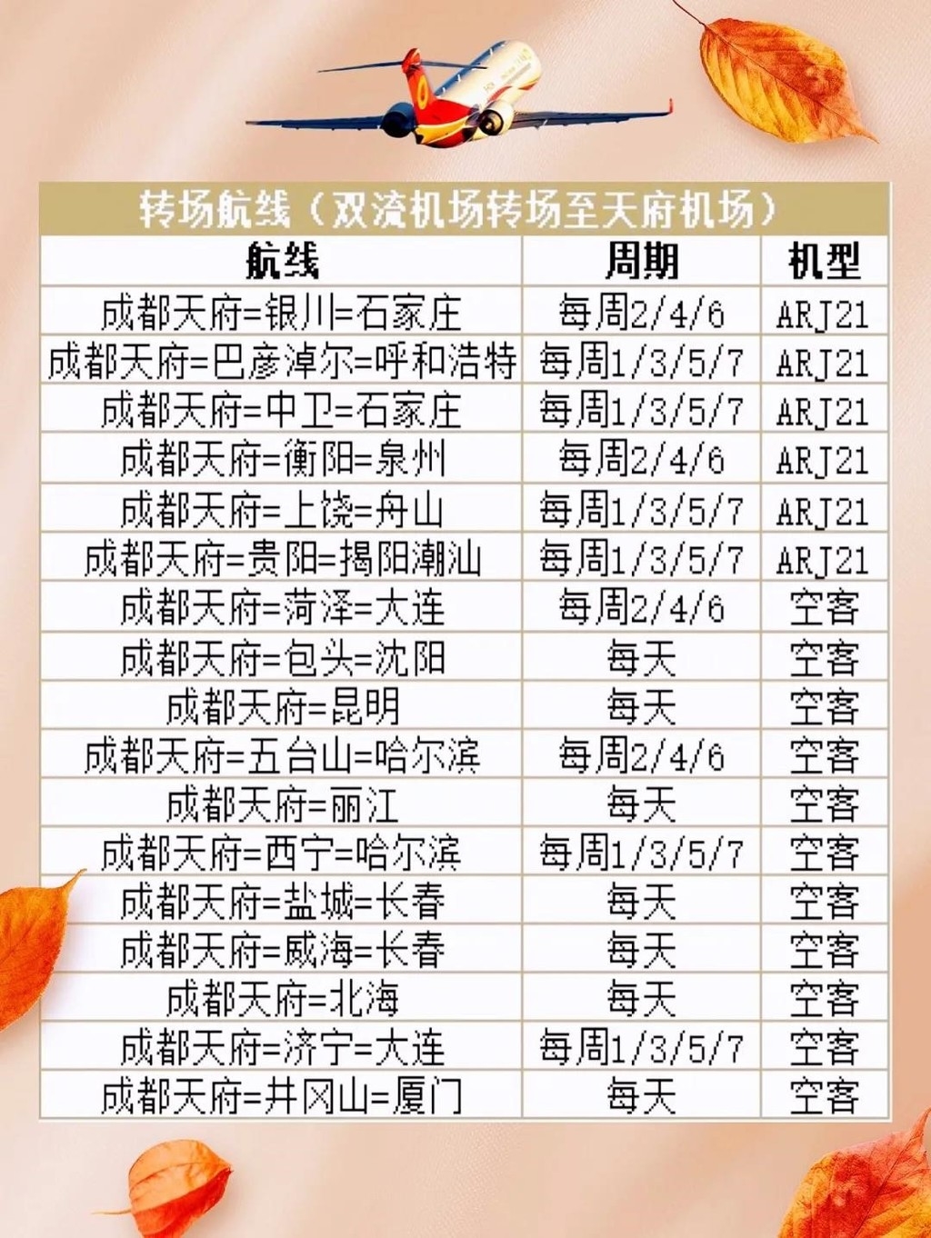 成都航空特别提醒,新航季,成都航空将有17条航线从双流机场转场至天府机场,请广大旅客注意乘机变化。