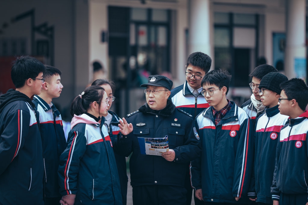 社区民警开展校园安全法治宣传活动。(资料图)
