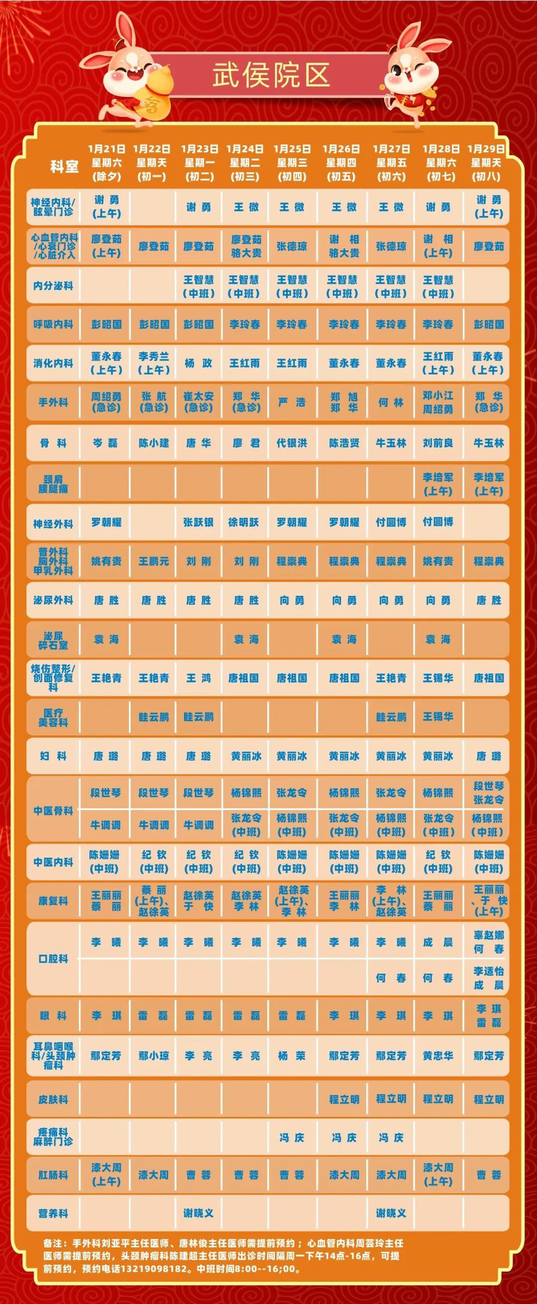 核磁共振MRI:1月21日-1月27日全天1位医师值班。