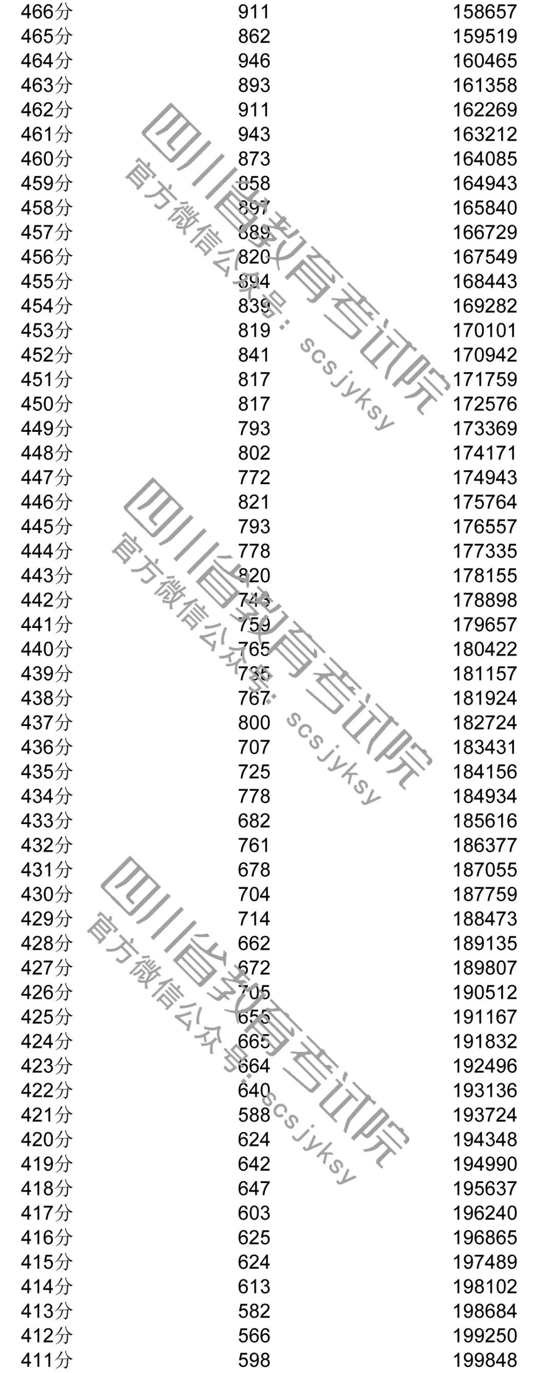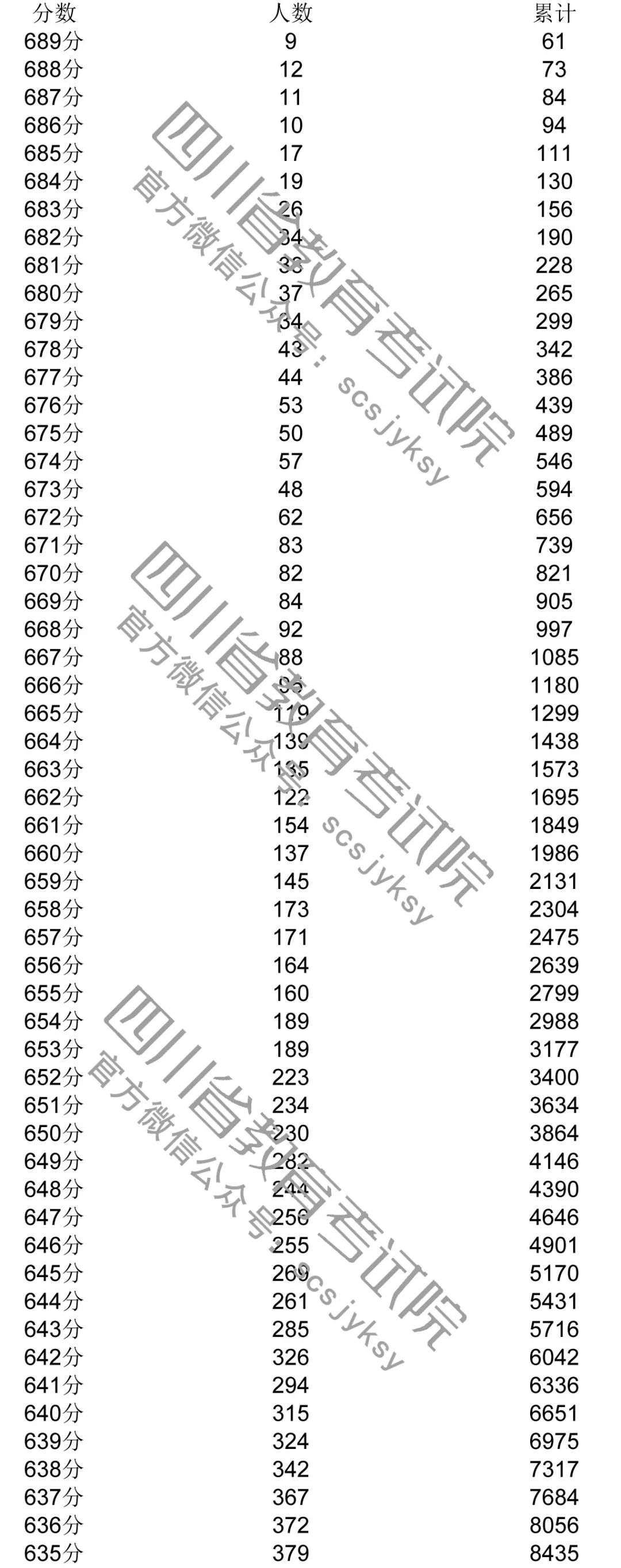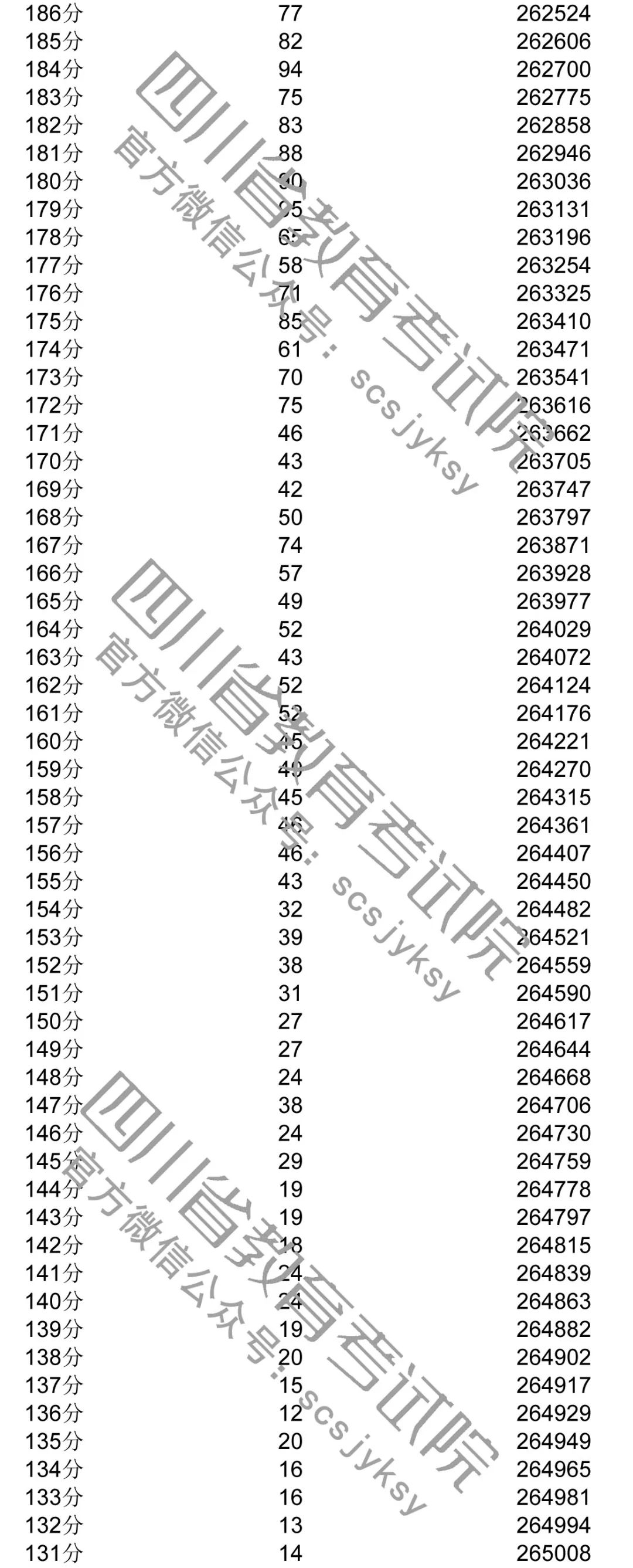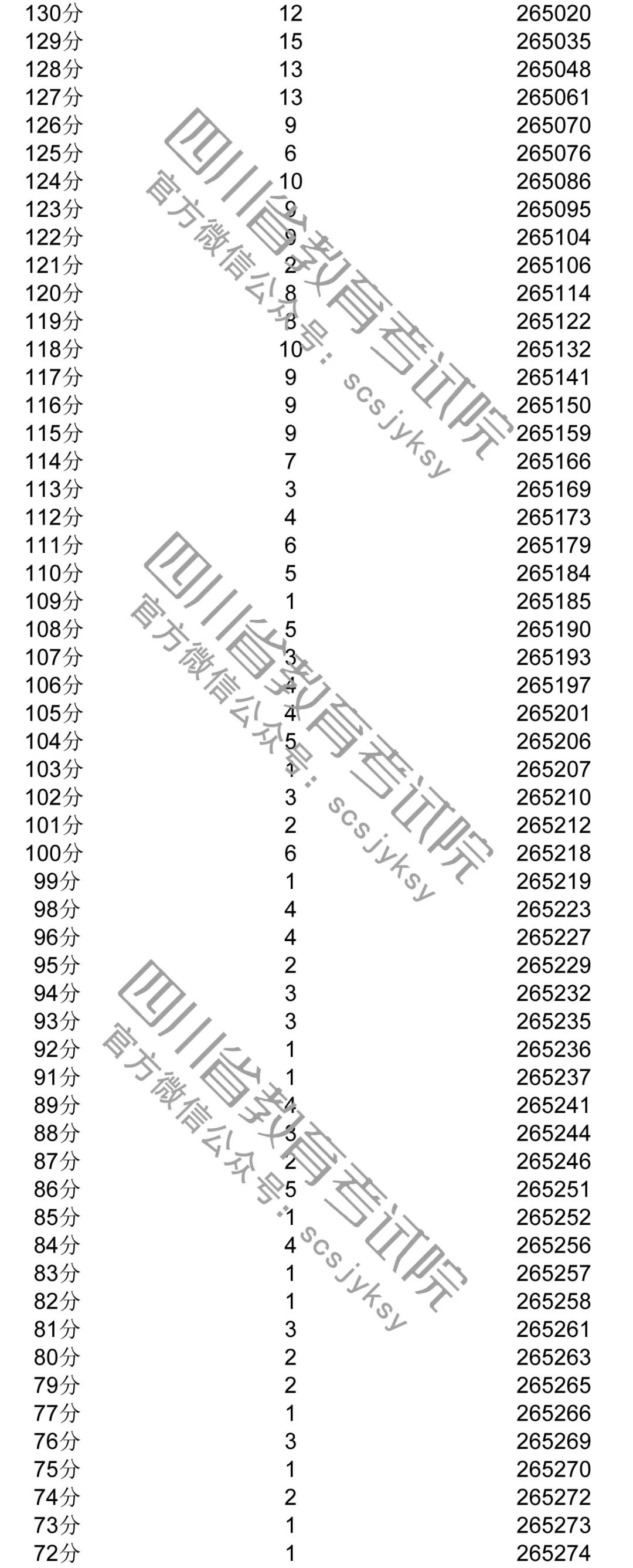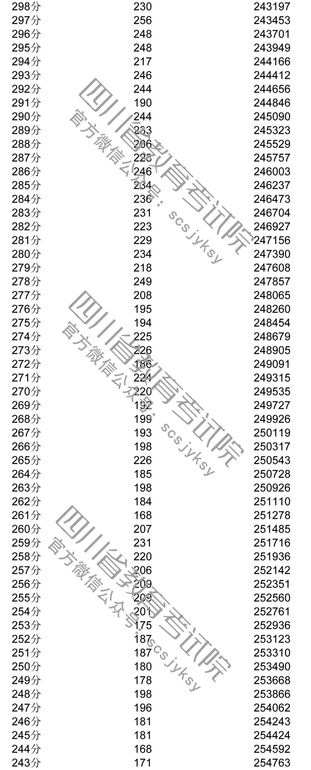 官方发布!四川省2018年普通高考理科成绩分段统计表