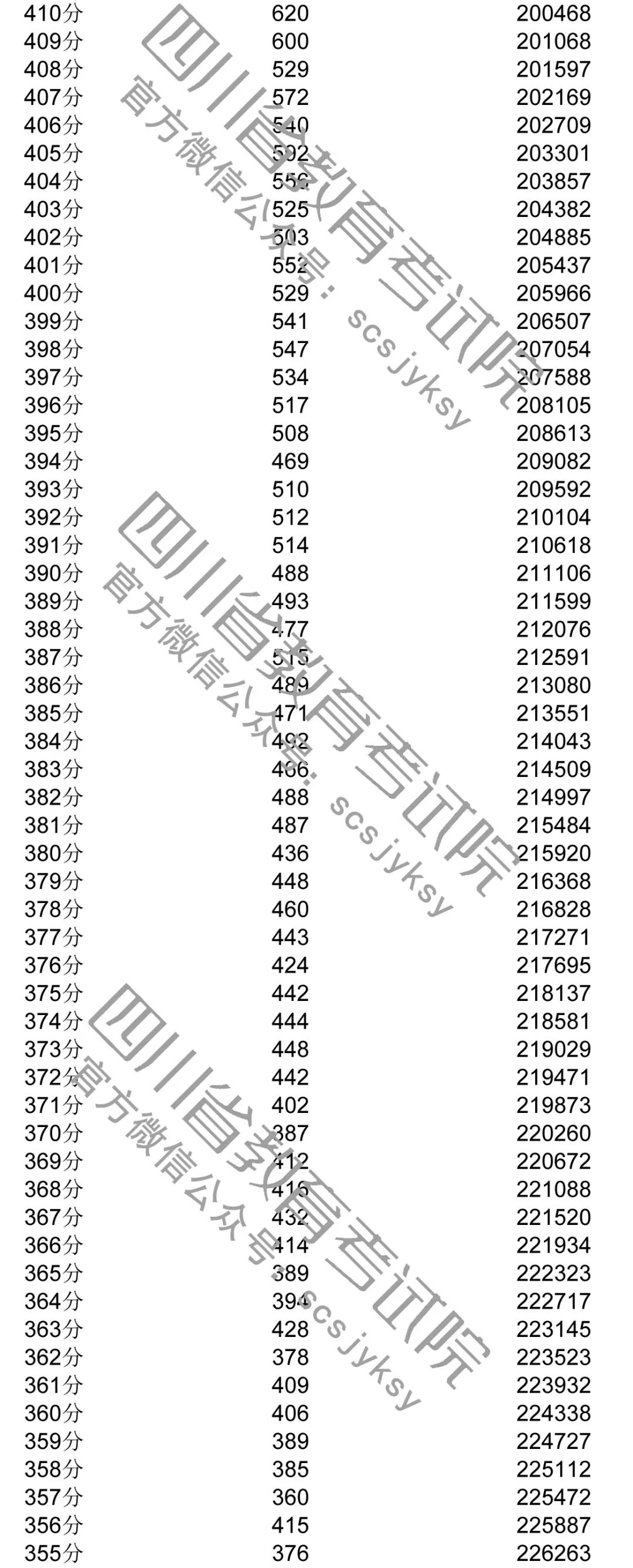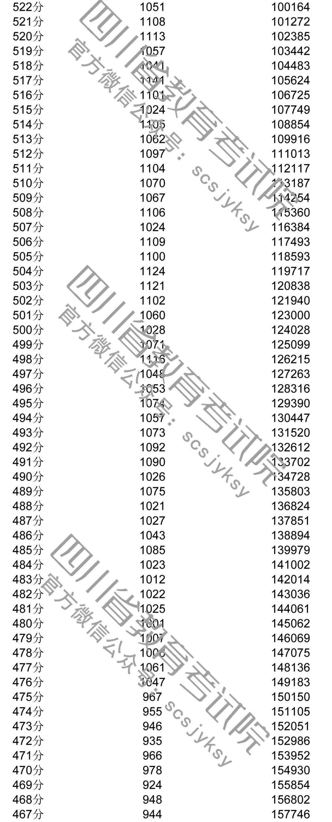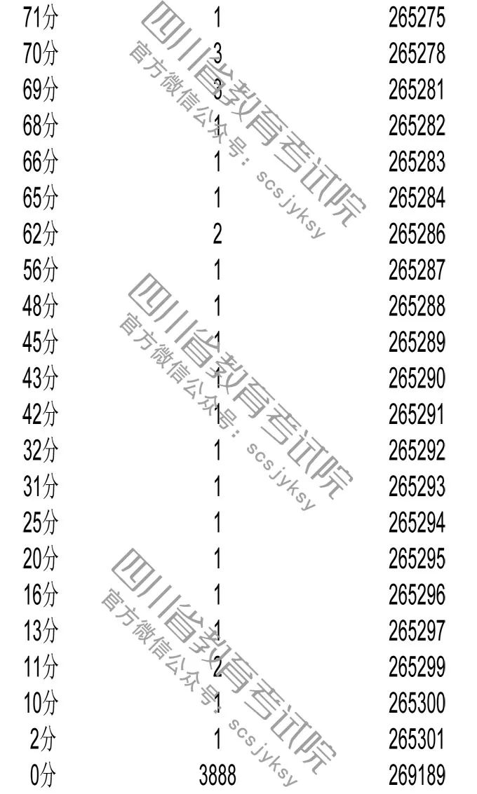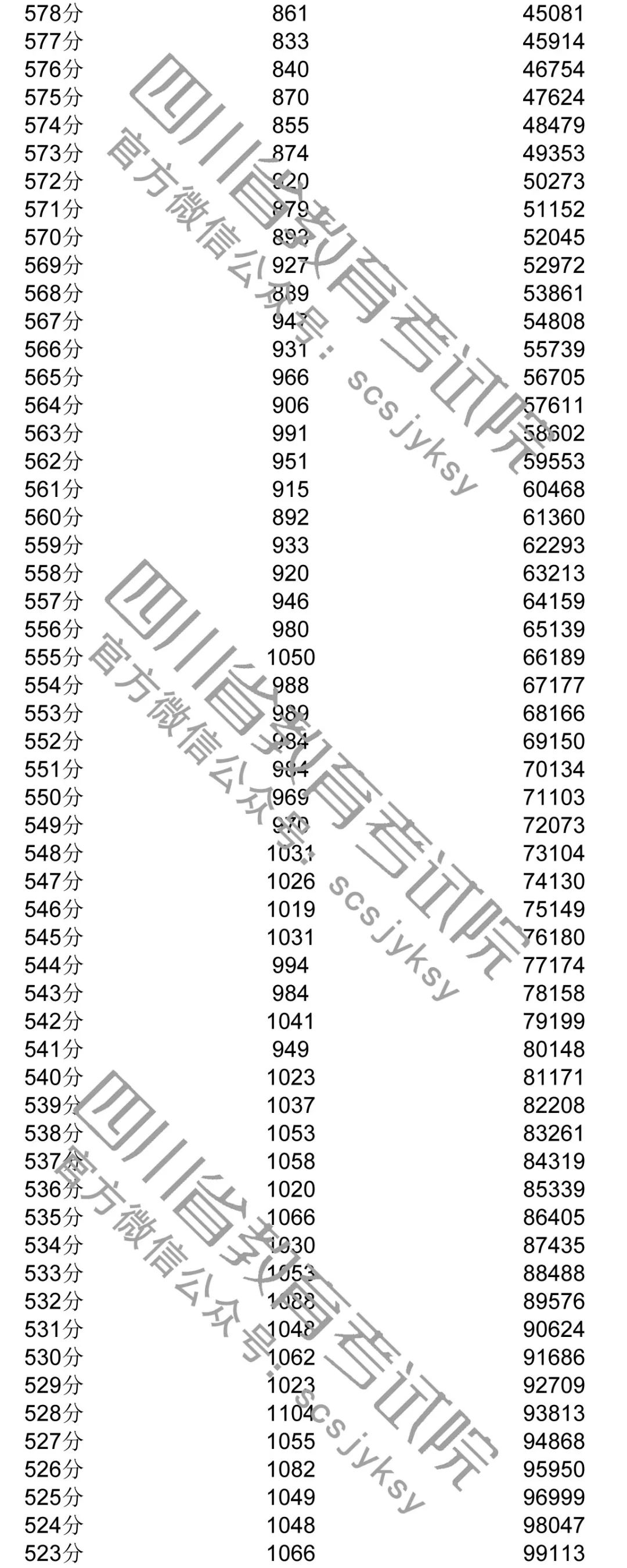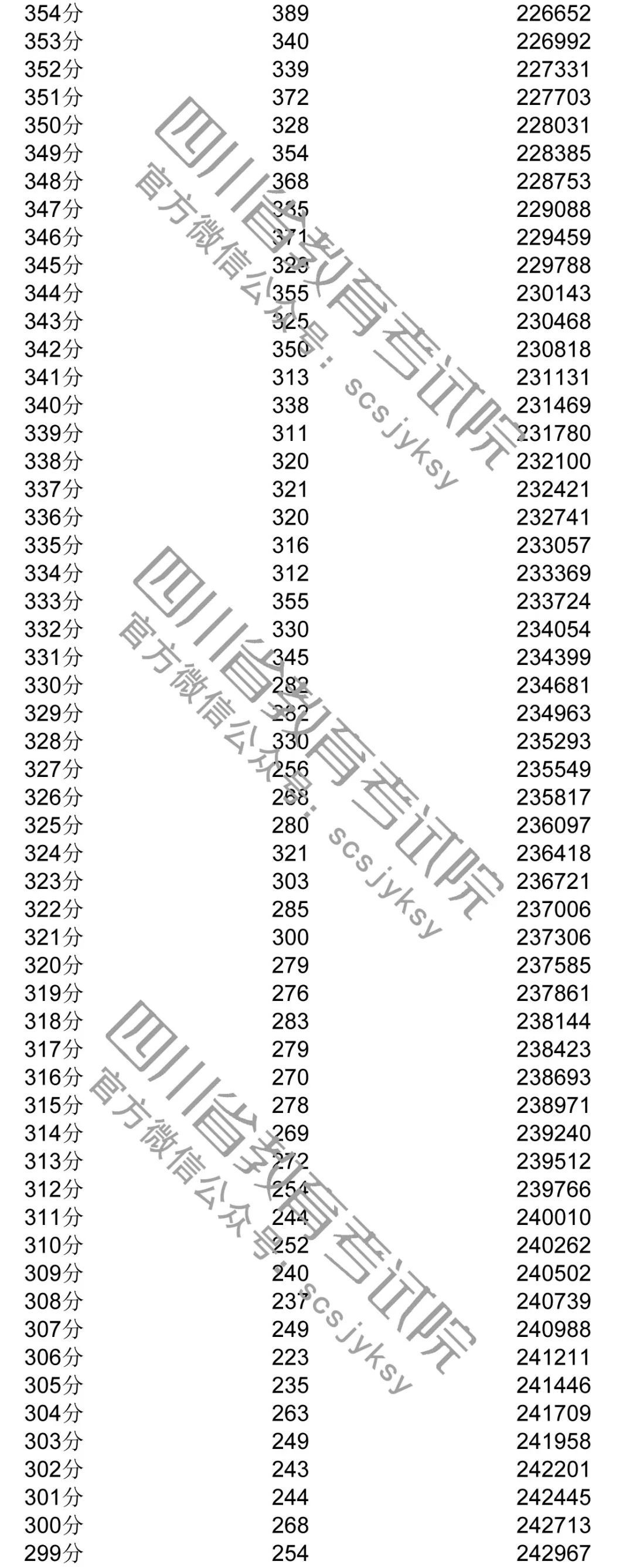官方发布!四川省2018年普通高考理科成绩分段统计表
