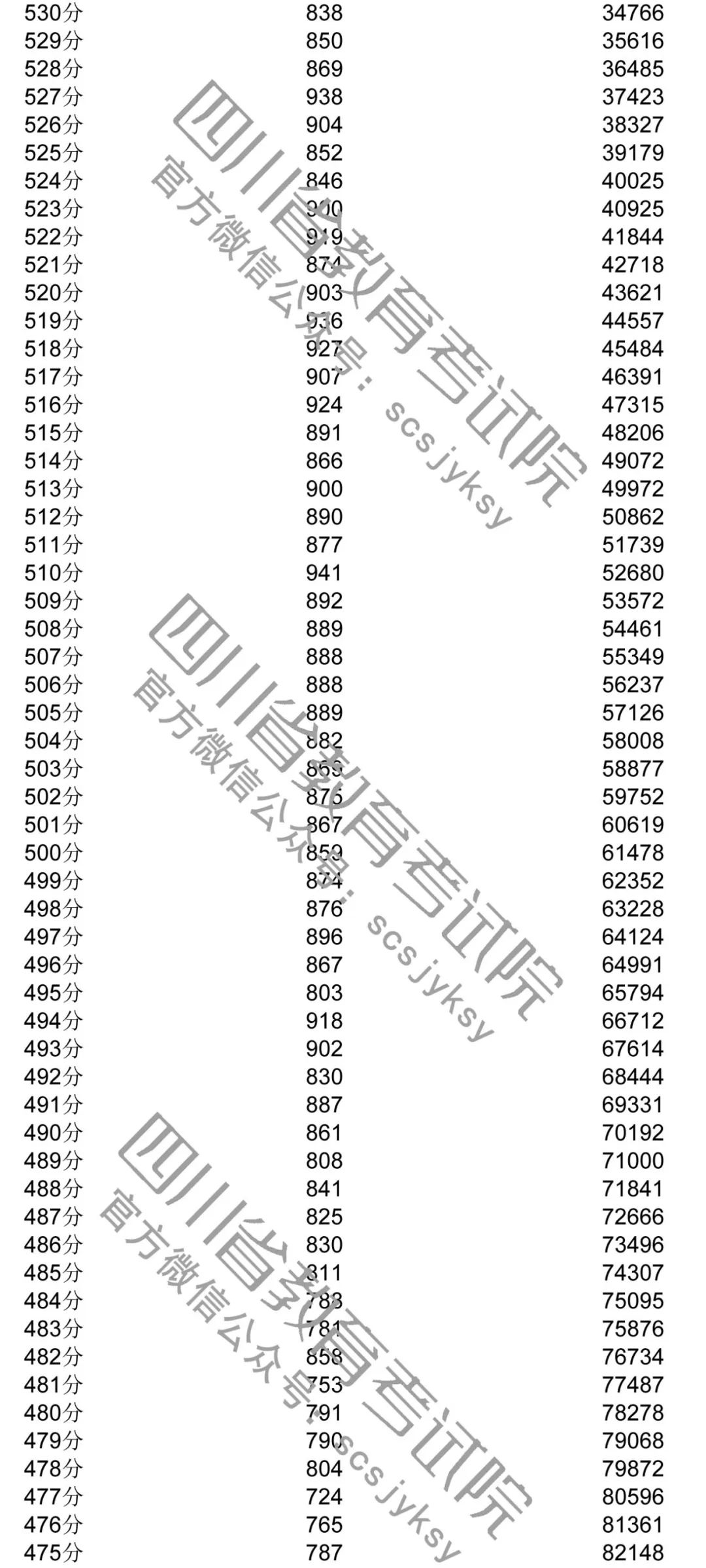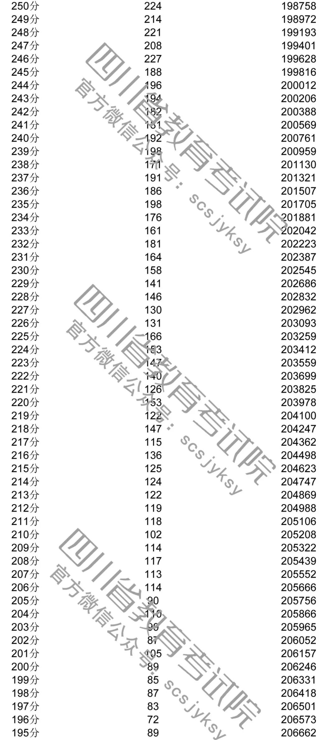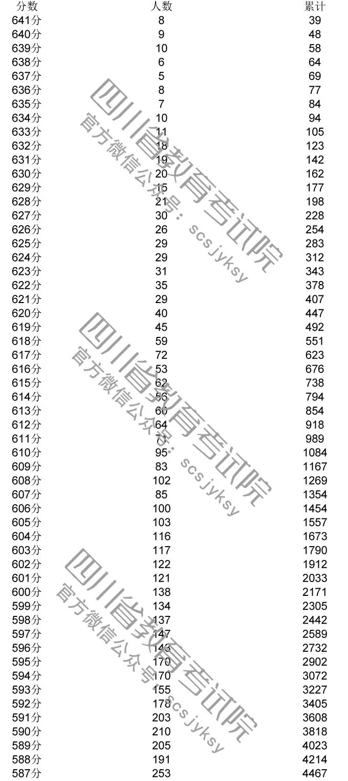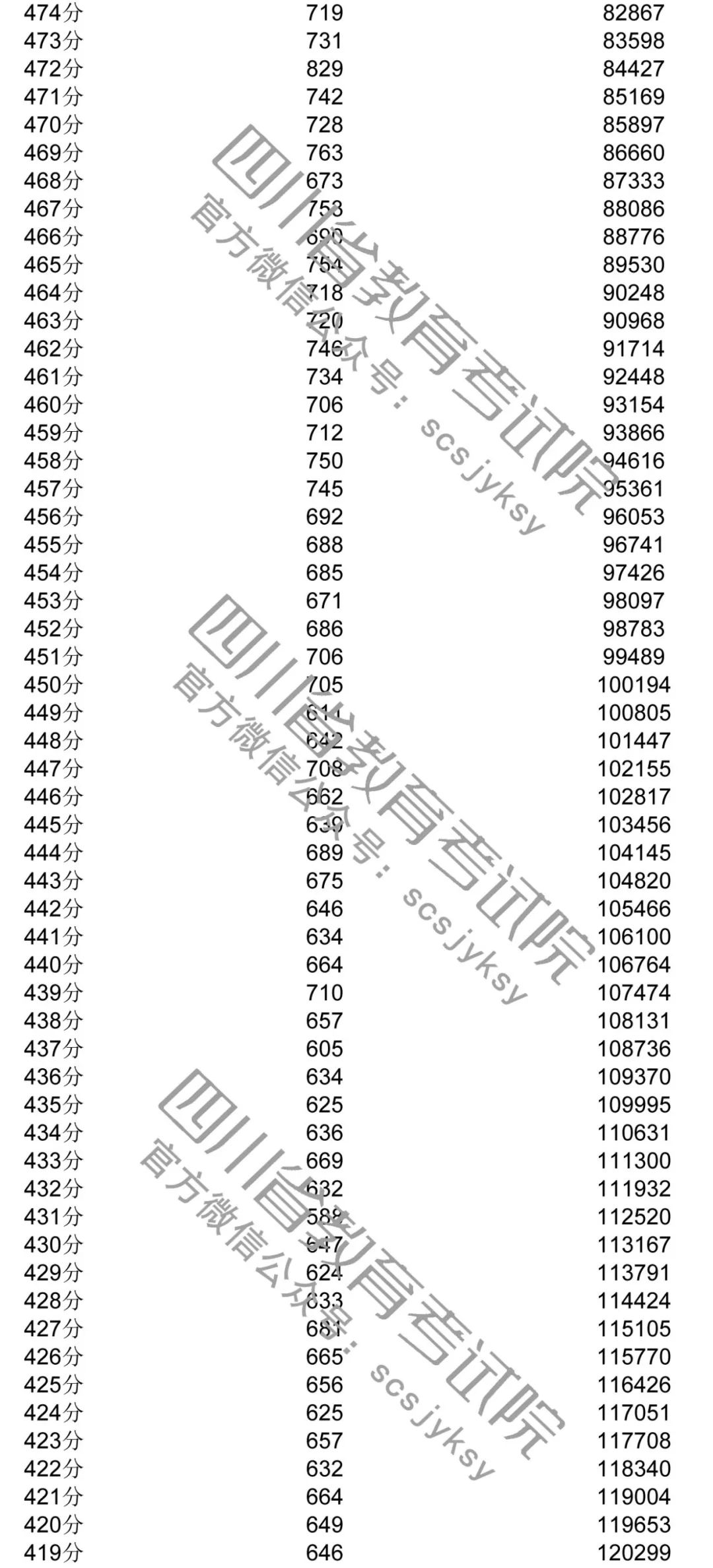 官方发布!四川省2018年普通高考文科成绩分段统计表