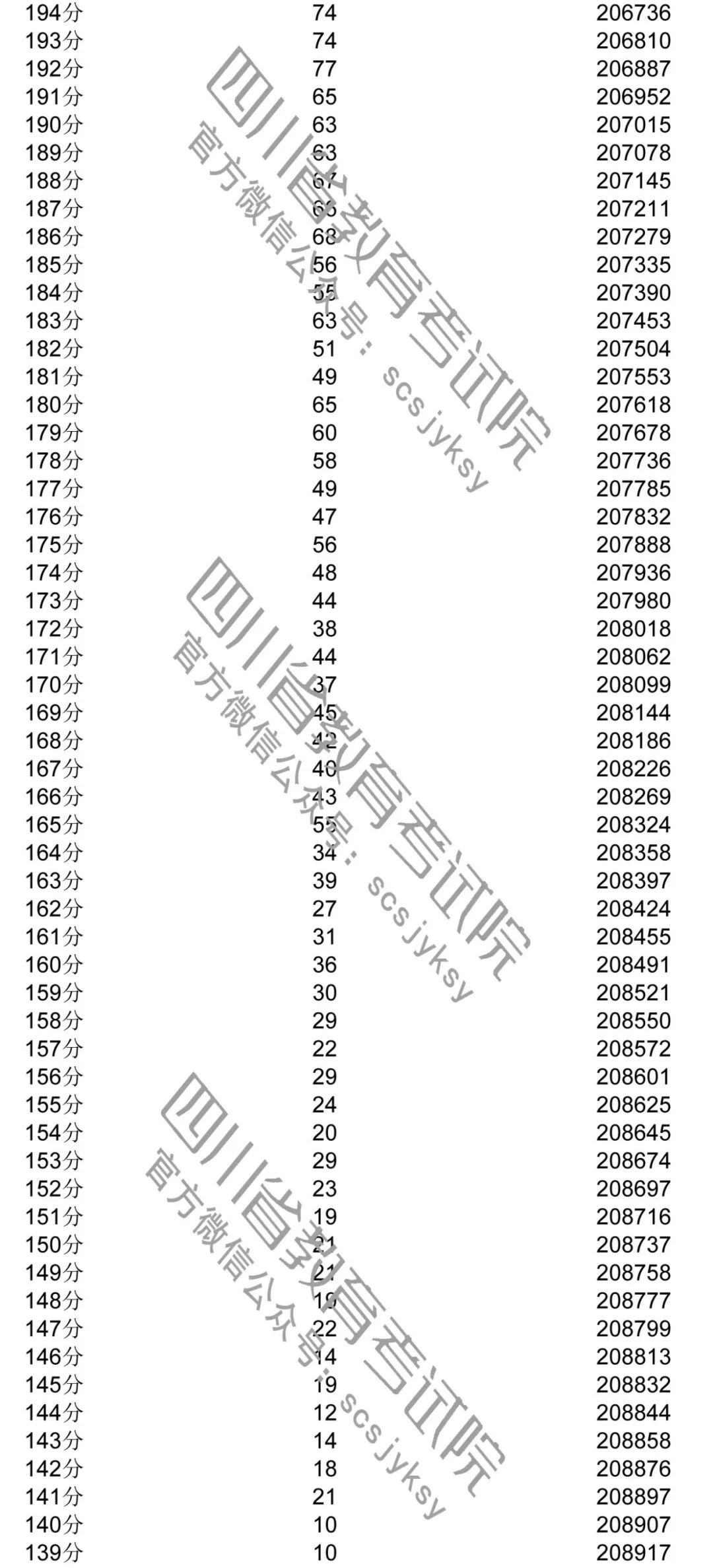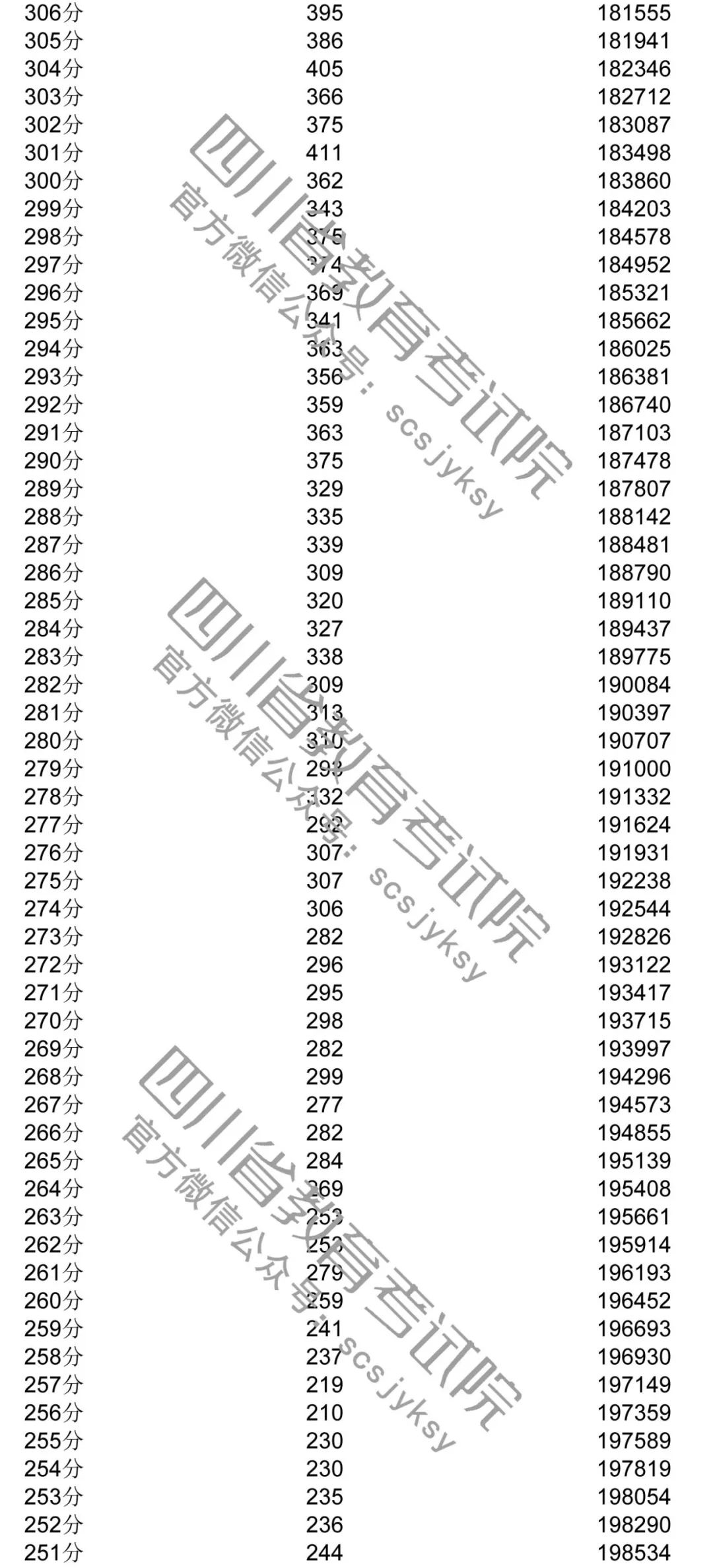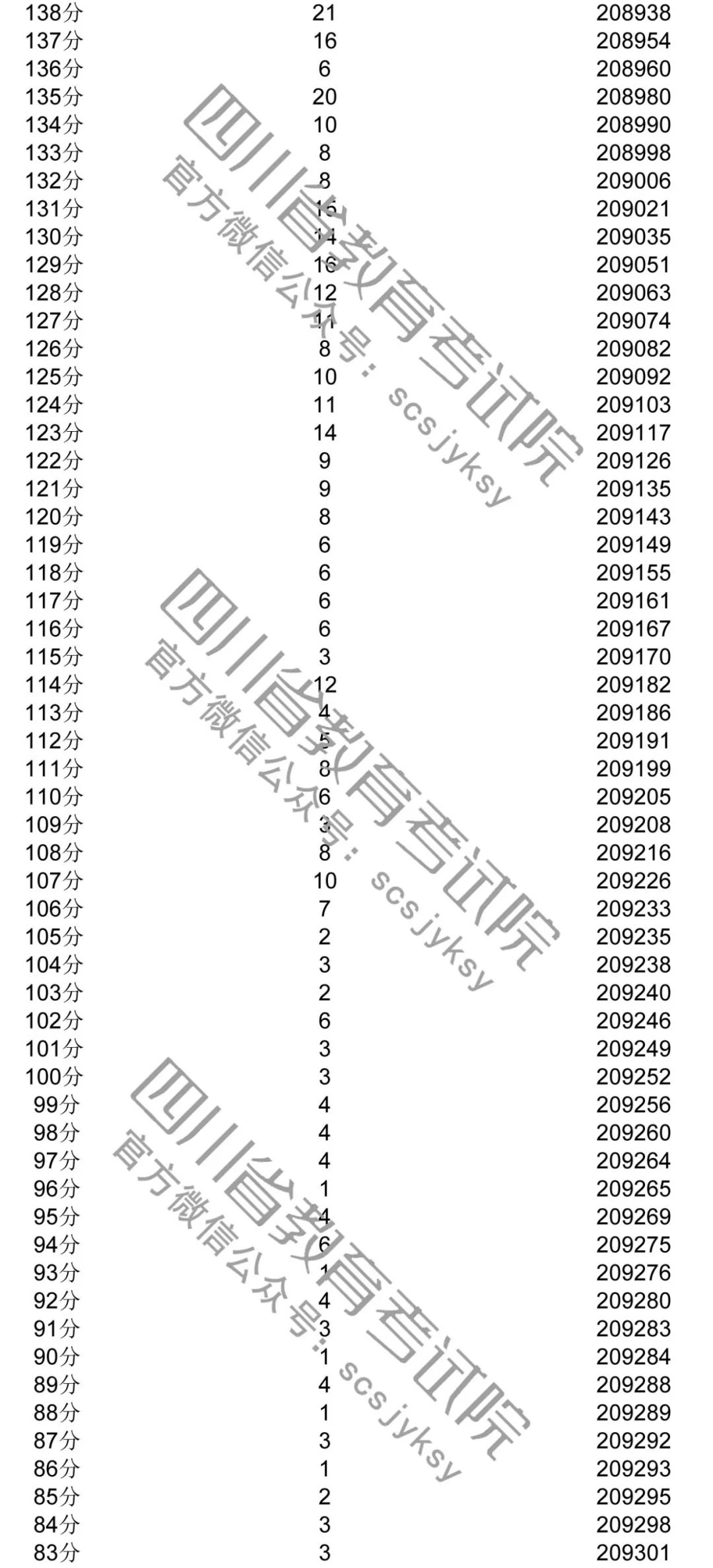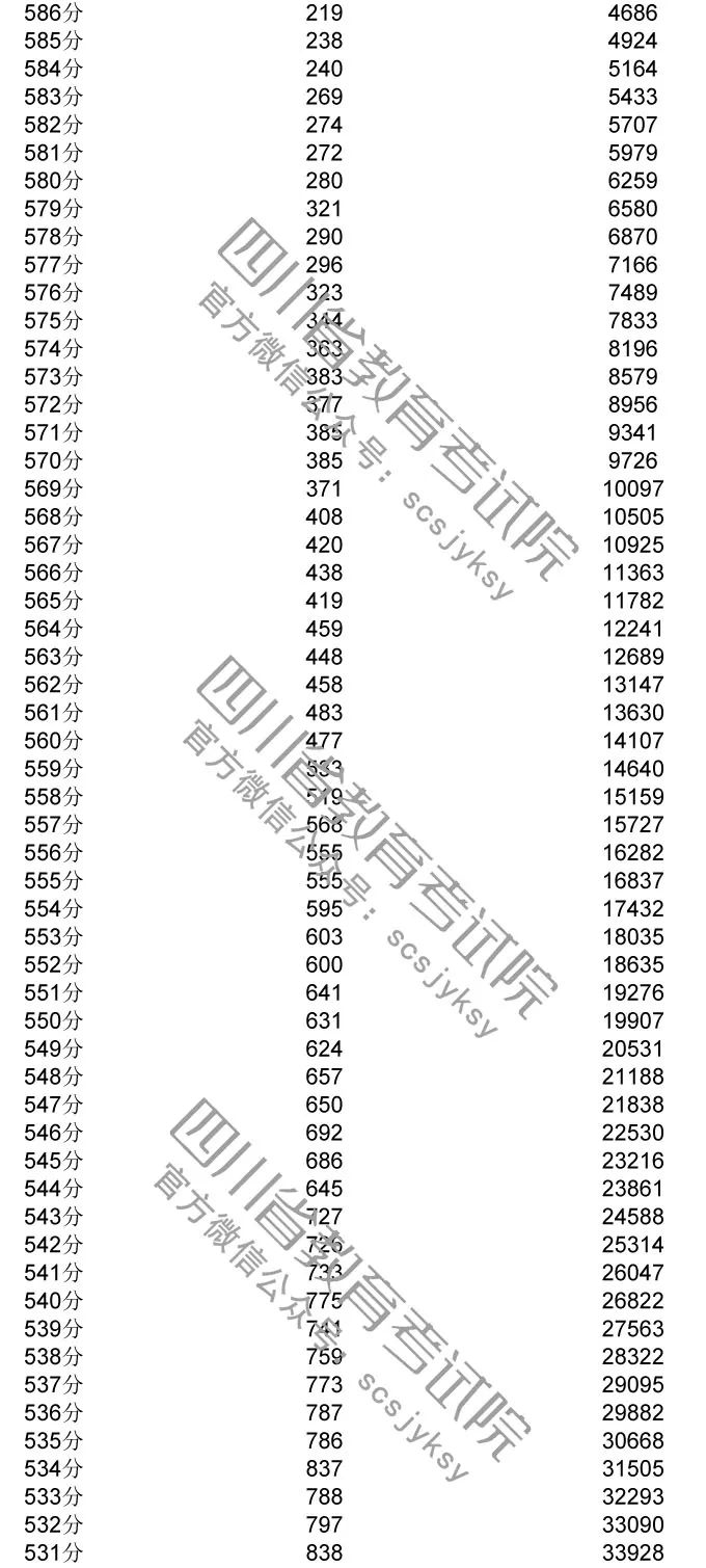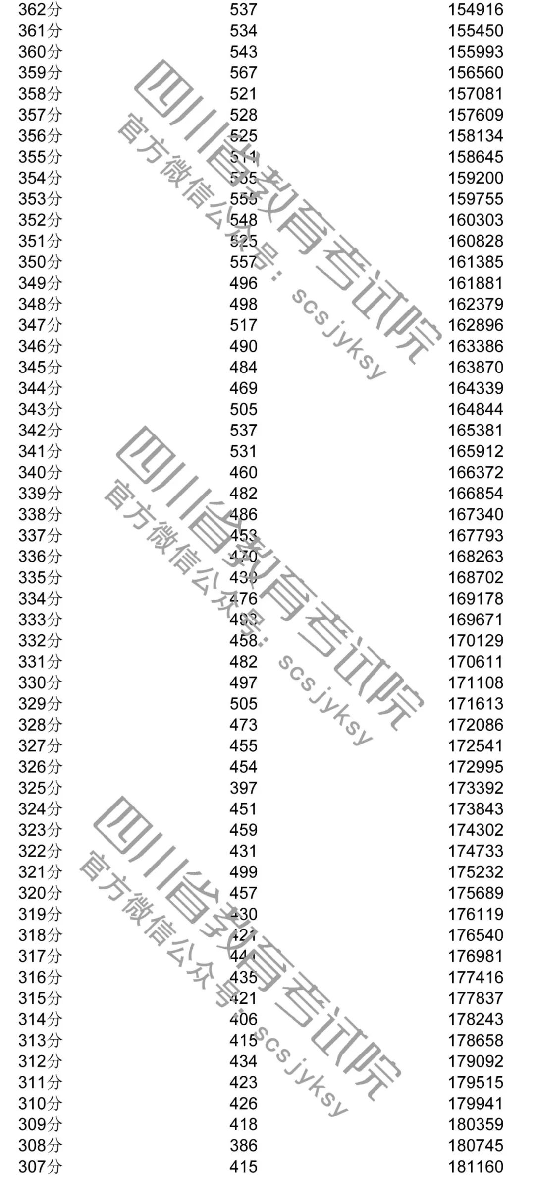 官方发布!四川省2018年普通高考文科成绩分段统计表
