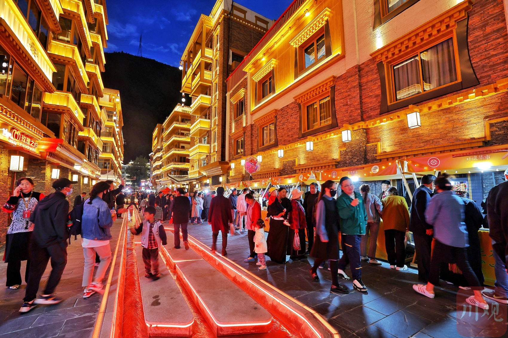 马尔康市嘉绒特色街区(原步行街)现已打造成“非遗集市”,这里集中展示了阿坝州24项传统技艺非遗项目、30项非遗文创产品、18项非遗美食项目,形成了以非遗“游”、“购”、“品”、“行”、“娱”为主题,具有国际范、民族风、时尚味的“2023年阿坝州非物质文化遗产展示展演系列活动”的大舞台。