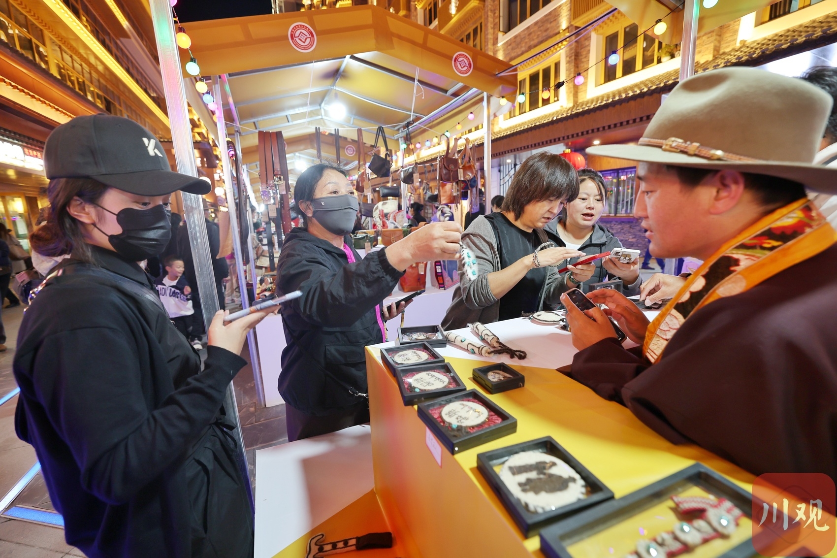 夜色中的“非遗集市”灯火通明、人头攒动,游客除了在现场观赏和购买外,还能亲自体验一些非遗项目。据了解,乐享非遗传承的主题活动将持续到17日。