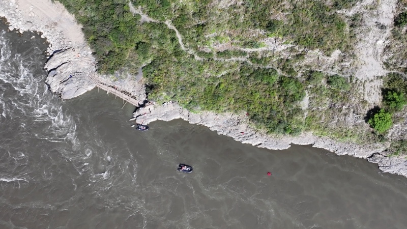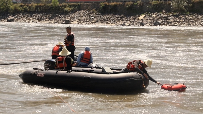 8月27日,阿坝州金川县大金川河咯尔乡德胜村河段,滔滔江水携滚滚热浪奔流而下。水流最为湍急之处、漩涡回环往复之所、悬崖绝壁之侧,两艘皮划艇上的救援人员,一次又一次地抛下声呐探测仪等设备。他们还在搜寻22日意外坠河失联的德胜村驻村第一书记何小青。(此前报道:阿坝金川一驻村第一书记下村入户途中坠河失联,搜救仍在进行)