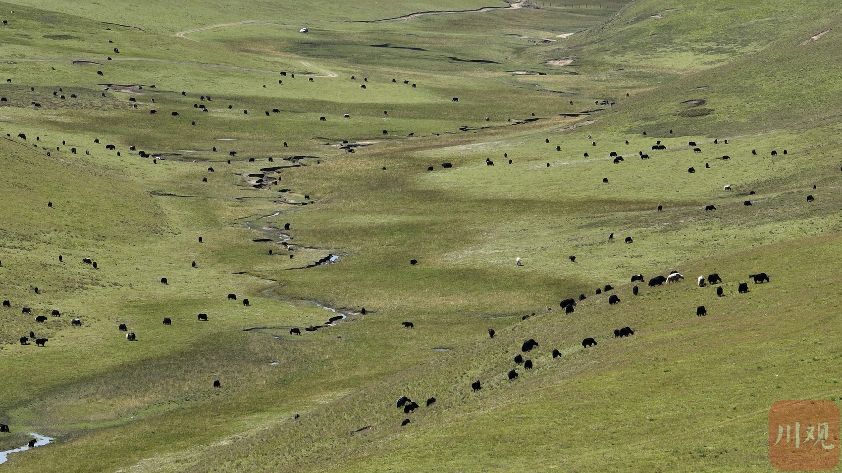 8月26日,记者行走在甘孜州炉霍县宗麦乡的草原上,远处,成群的牦牛在草原上吃草、奔跑。其中,白色的牦牛仿佛朵朵云彩点缀其间,它们是炉霍县的新朋友——从青海引进的白牦牛。