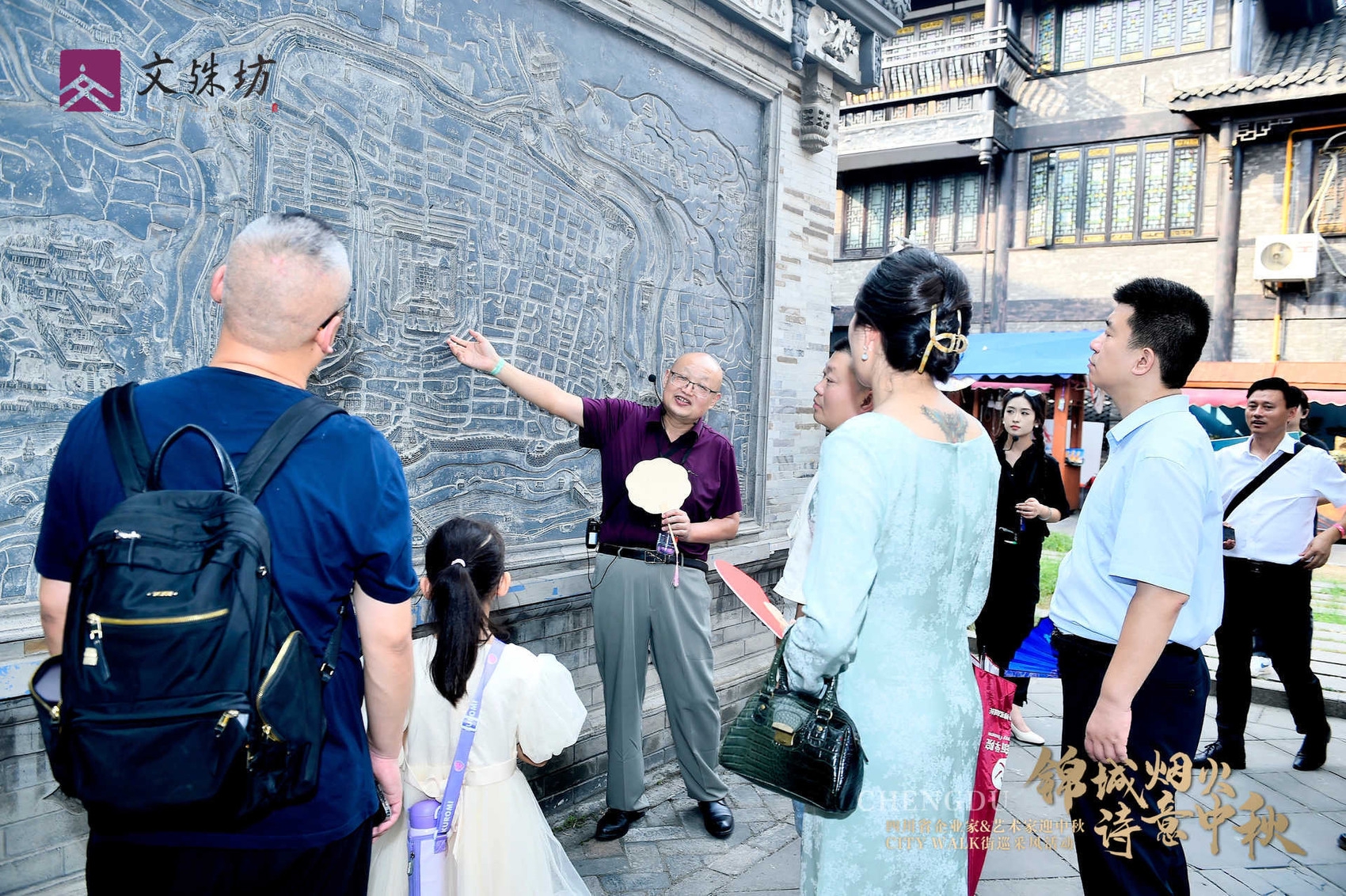 9月6日,由四川省文学艺术界联合会指导,四川省书法家协会、四川省美术家协会、四川省摄影家协会等单位联合主办的“锦城烟火 诗意中秋——四川省企业家&艺术家迎中秋city walk街巡采风活动”在文殊坊景区拉开帷幕。