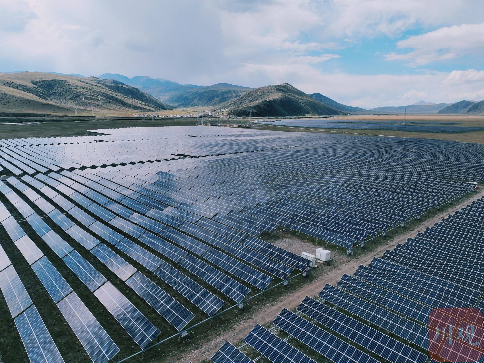 9月3日,西藏昌都高原生态光伏发电基地八宿县邦达示范园区,阳光下,太阳能光伏阵列一眼望不到头,这是已经投产的西藏开投昌都能源基地20兆瓦牧光互补复合型光伏项目。