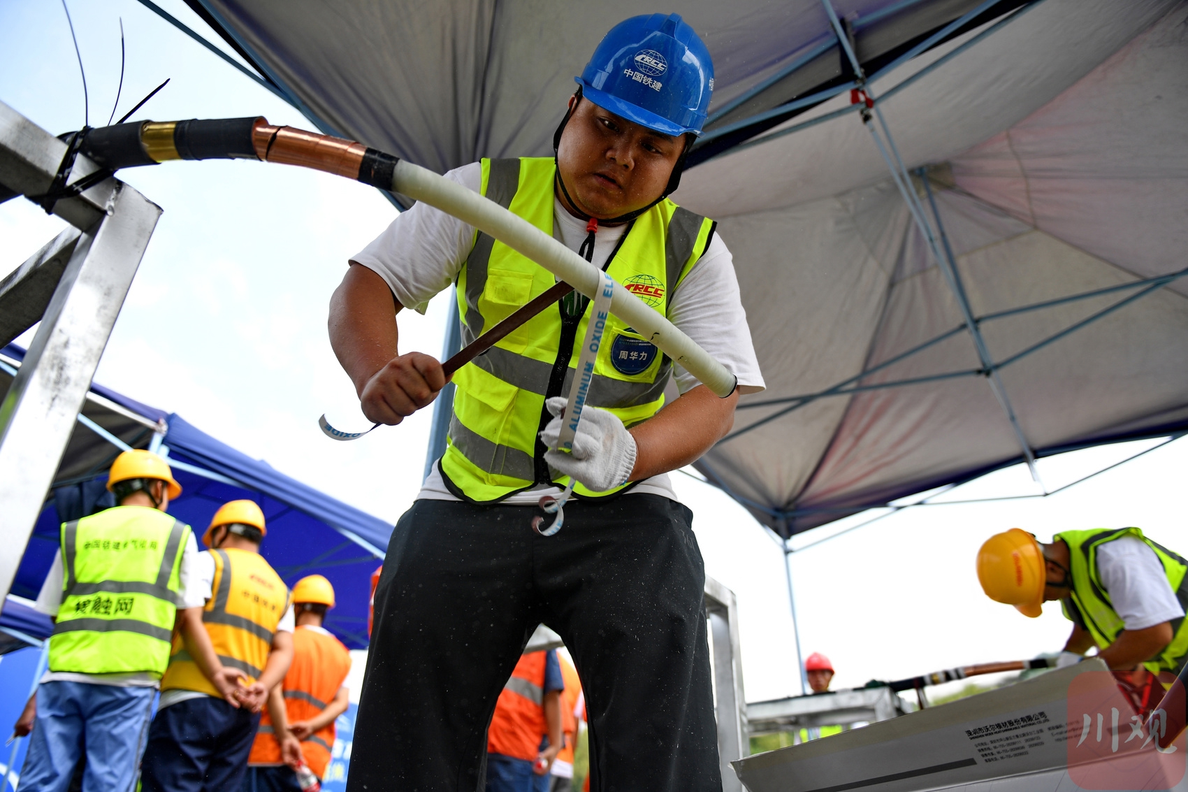 参加“成都百万职工技能大赛之城市轨道交通供电系统职业技能竞赛”的选手正在参加电缆终端头制作比赛。
