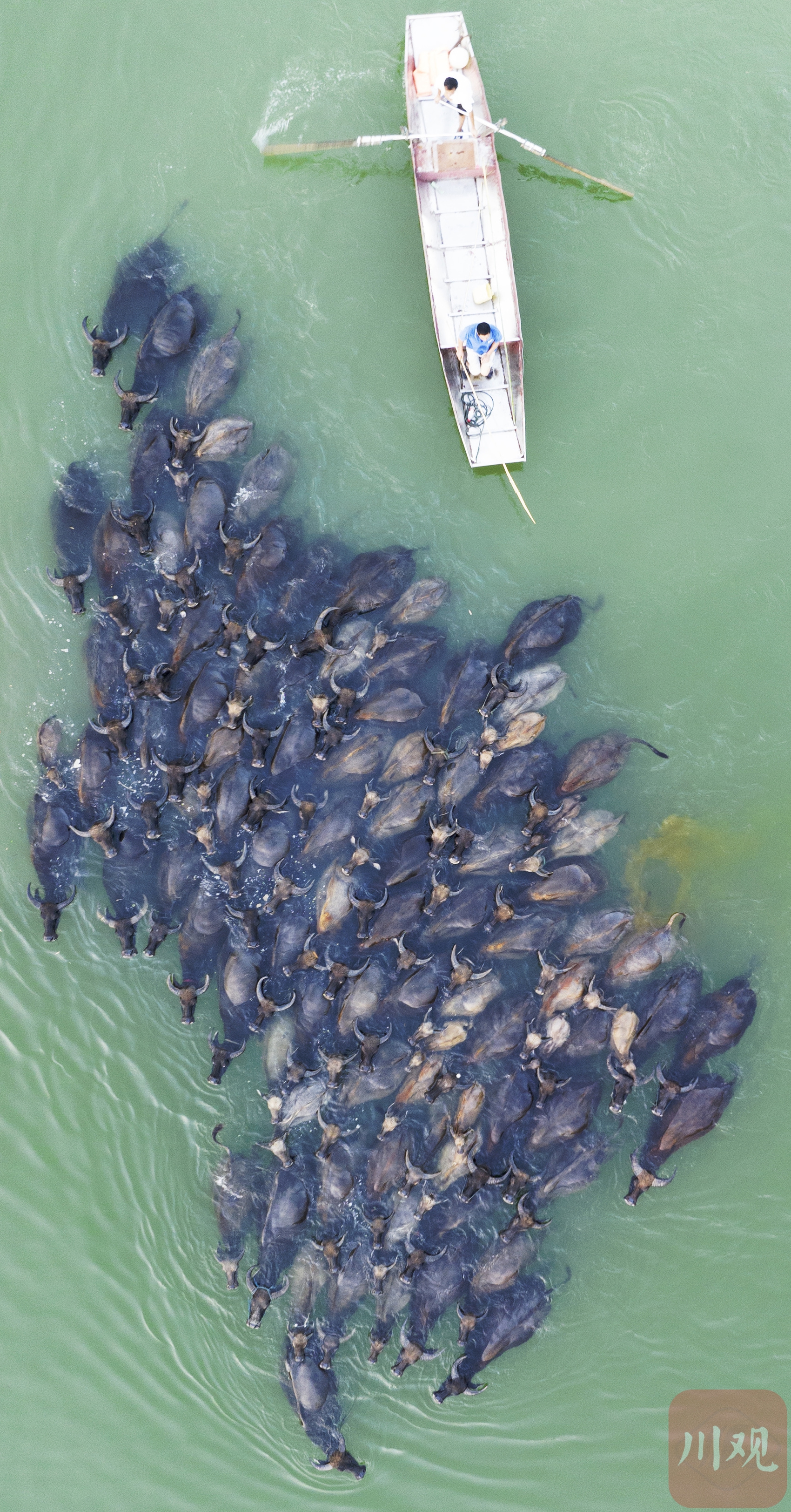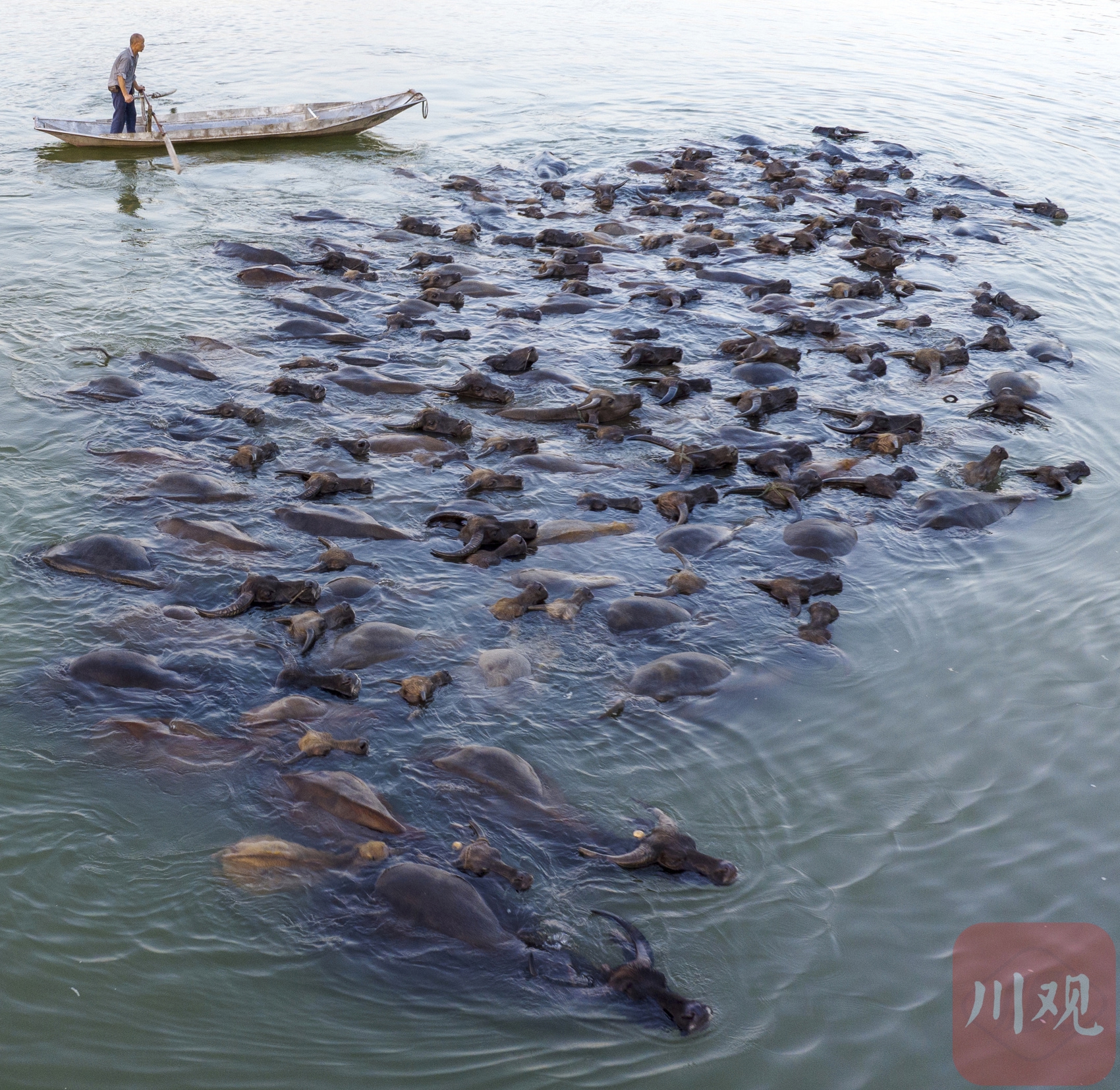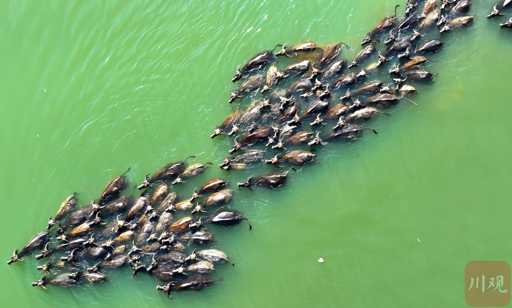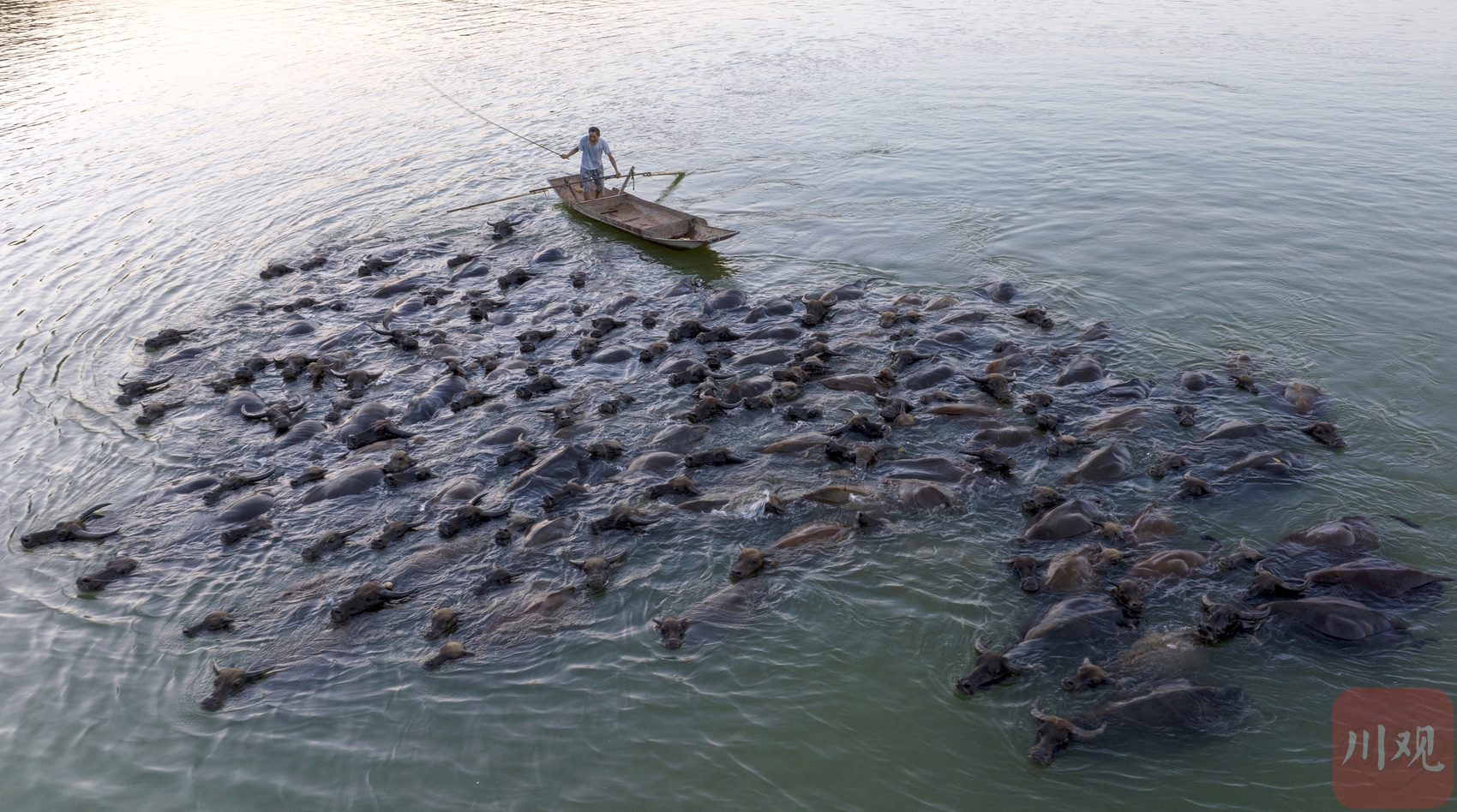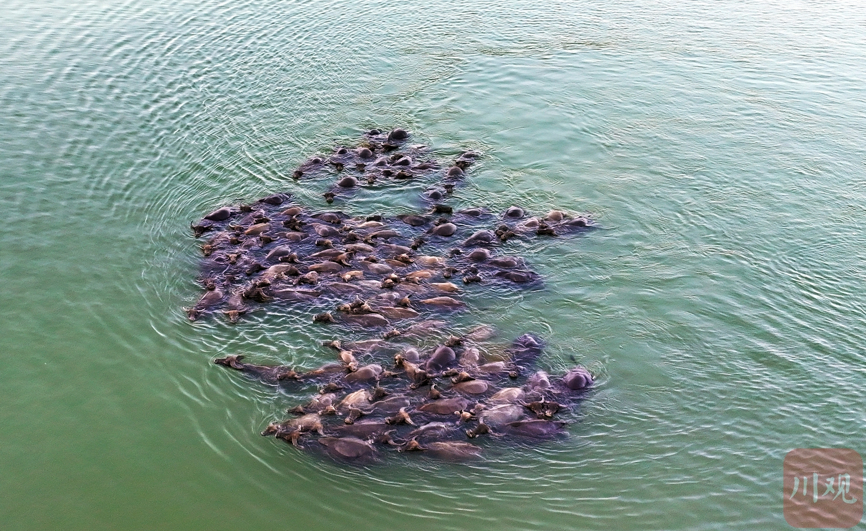 牛群在横渡嘉陵江,形成“百牛渡江”奇观。