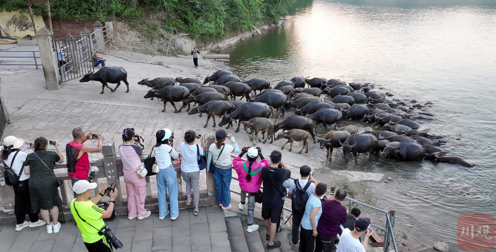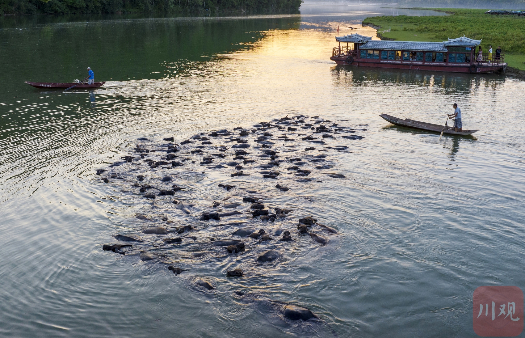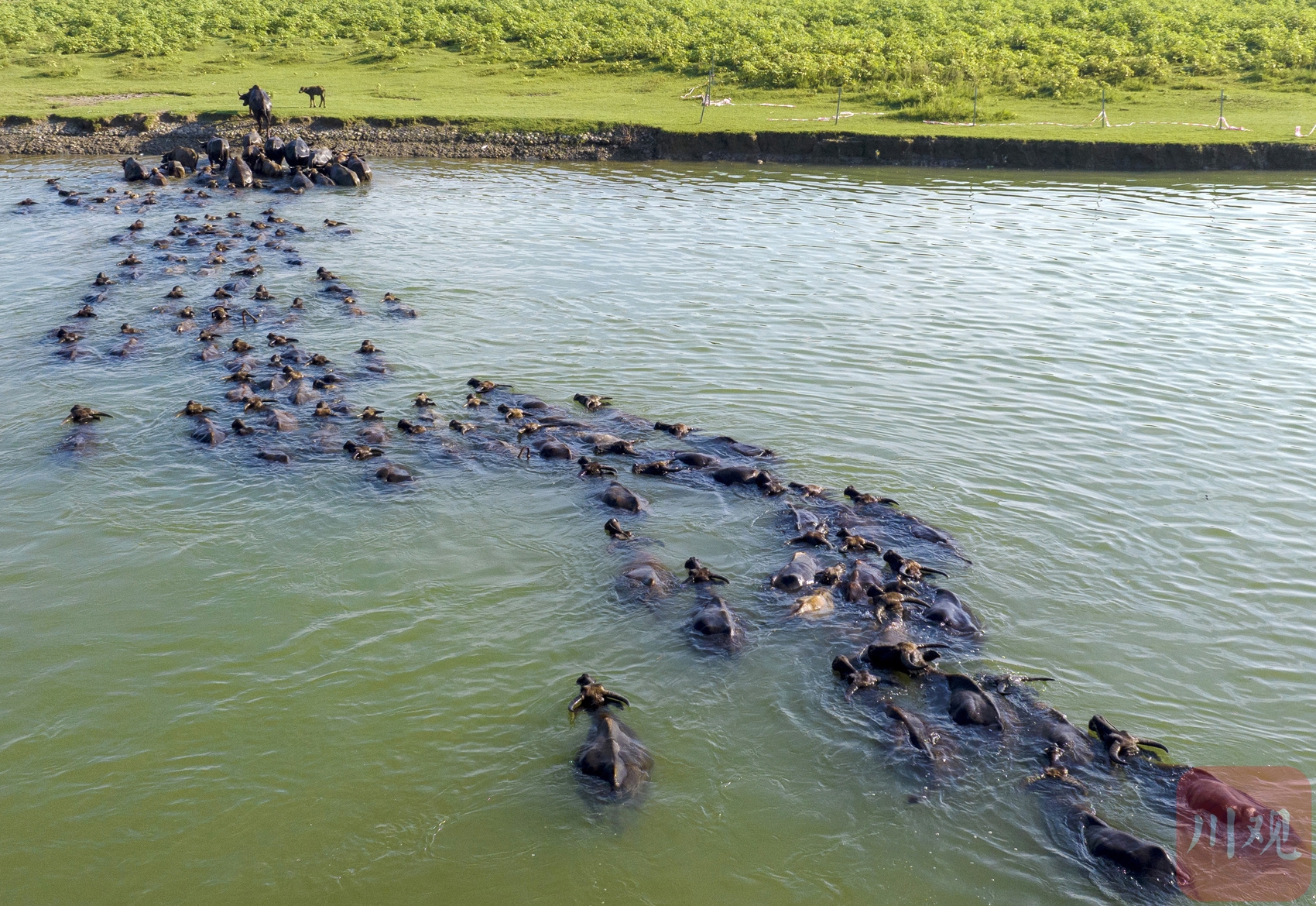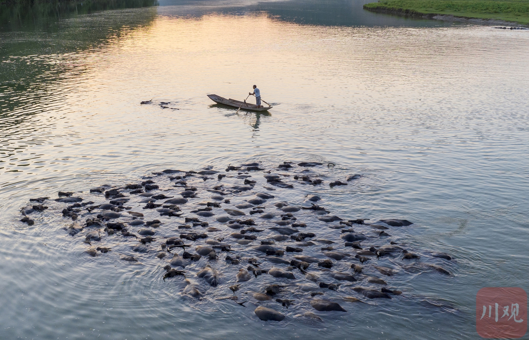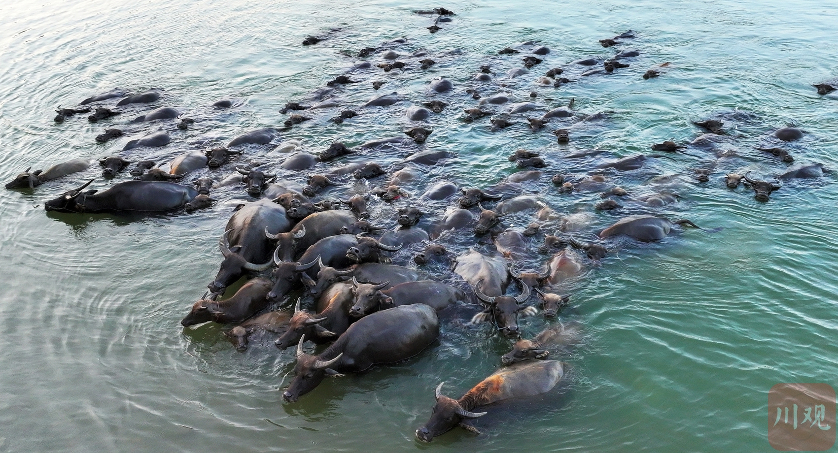 牛群在横渡嘉陵江,形成“百牛渡江”奇观。