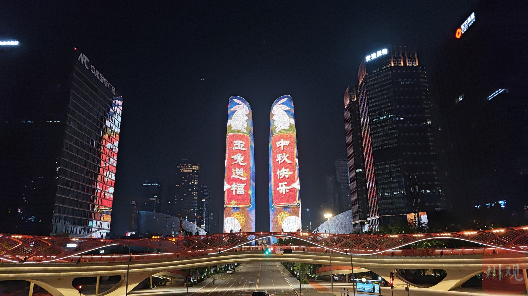 9月17日晚,成都高新区的“月亮上写诗”天府双塔诗意光影SHOW成为不少市民游客在中秋月圆夜的首选打卡地。萌萌的玉兔在月饼上蹦哒,花团锦簇间浮现出一轮皎洁的明月,“玉兔送福、中秋快乐”等字样更是让许多人翘首以盼,只为抓拍下这一帧。