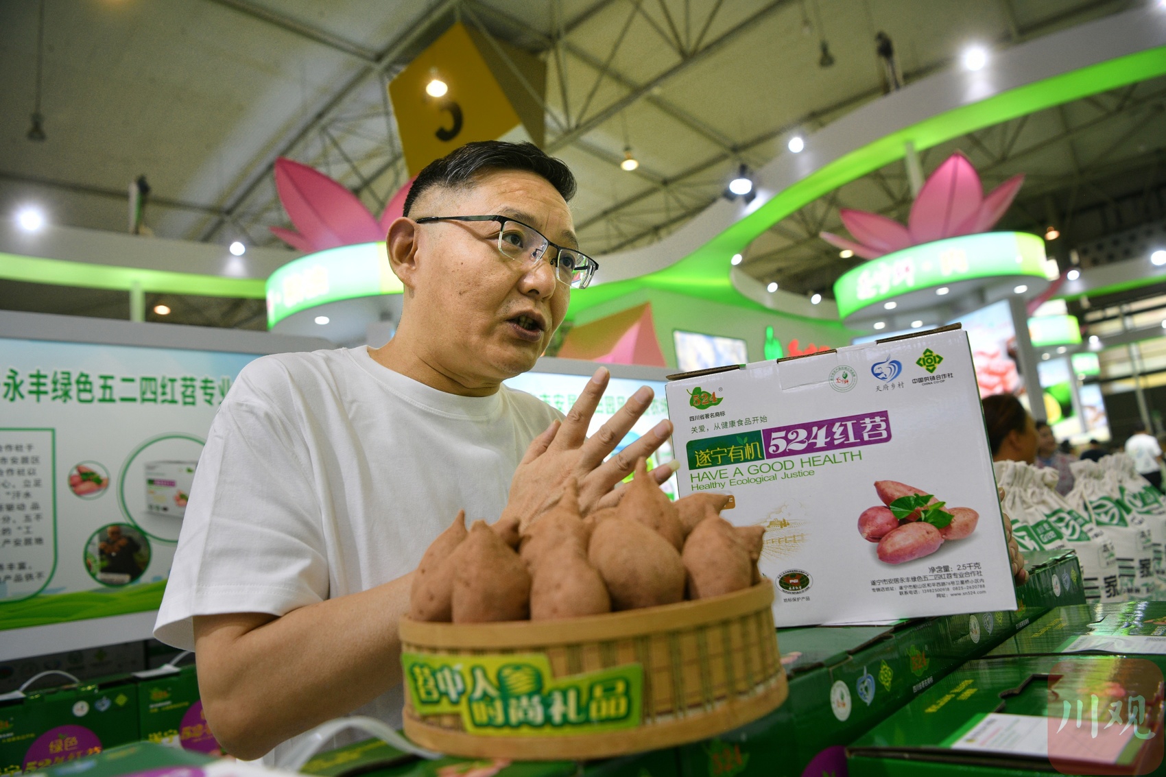 “现在,我们的绿色524红苕6元一斤,有机524红苕12元一斤。”谭文介绍,目前合作社70%客户来自参展对接。未来,打开红薯销售渠道,合作社还将继续参加四川农博会和其他农业展会。