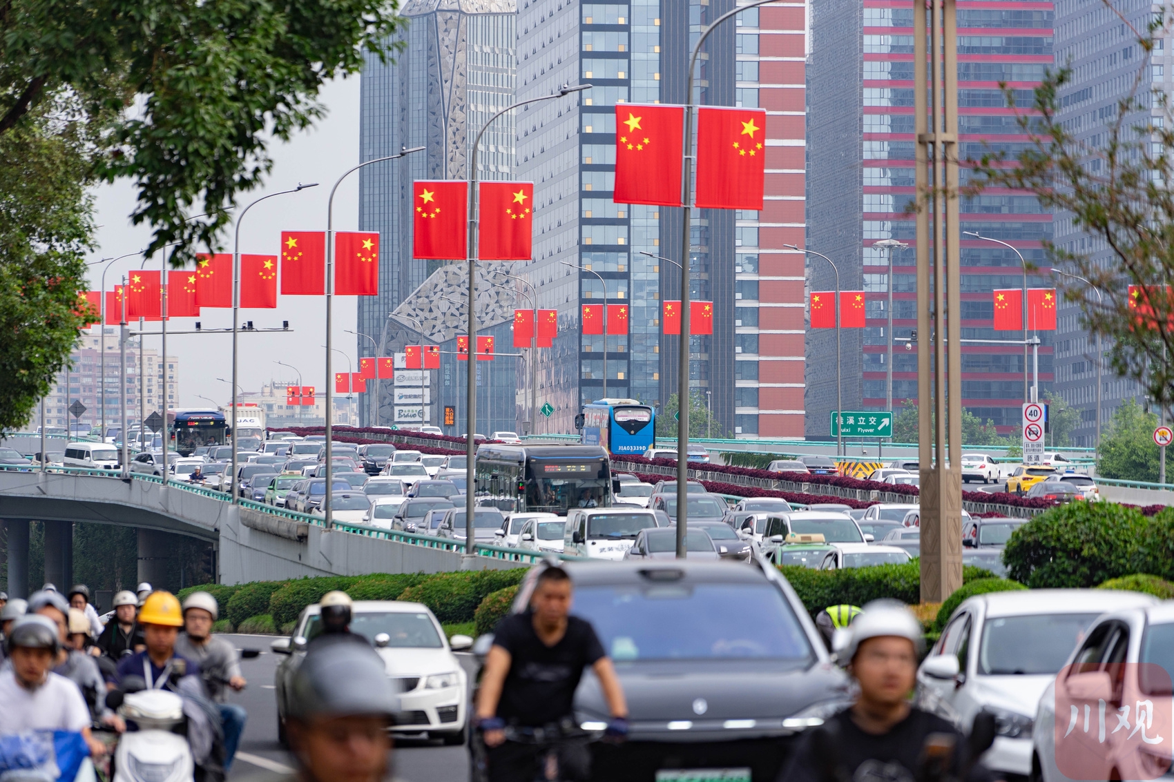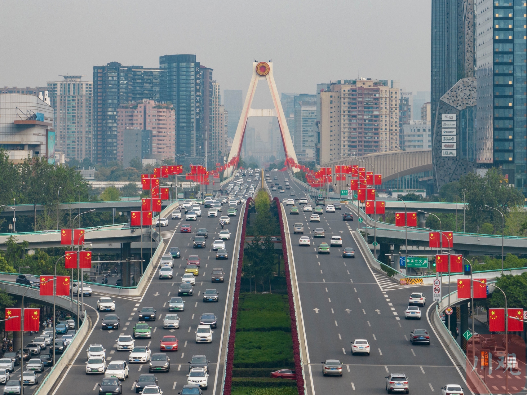 据了解,从9月20日起,成都市城市管理委员会组织中心城区陆续在天府广场、人民南路、天府大道、一环路等在内的200多条重要路段及区域,以及城市交通要道、交通枢纽、旅游景点周边的道路灯杆上悬挂国旗。同时,成都其他区(市)县将根据各自辖区内的实际情况自行安排悬挂路段和规模。预计“5+2”中心城区将悬挂国旗2.5万余面,全市共悬挂国旗8.6万余面。