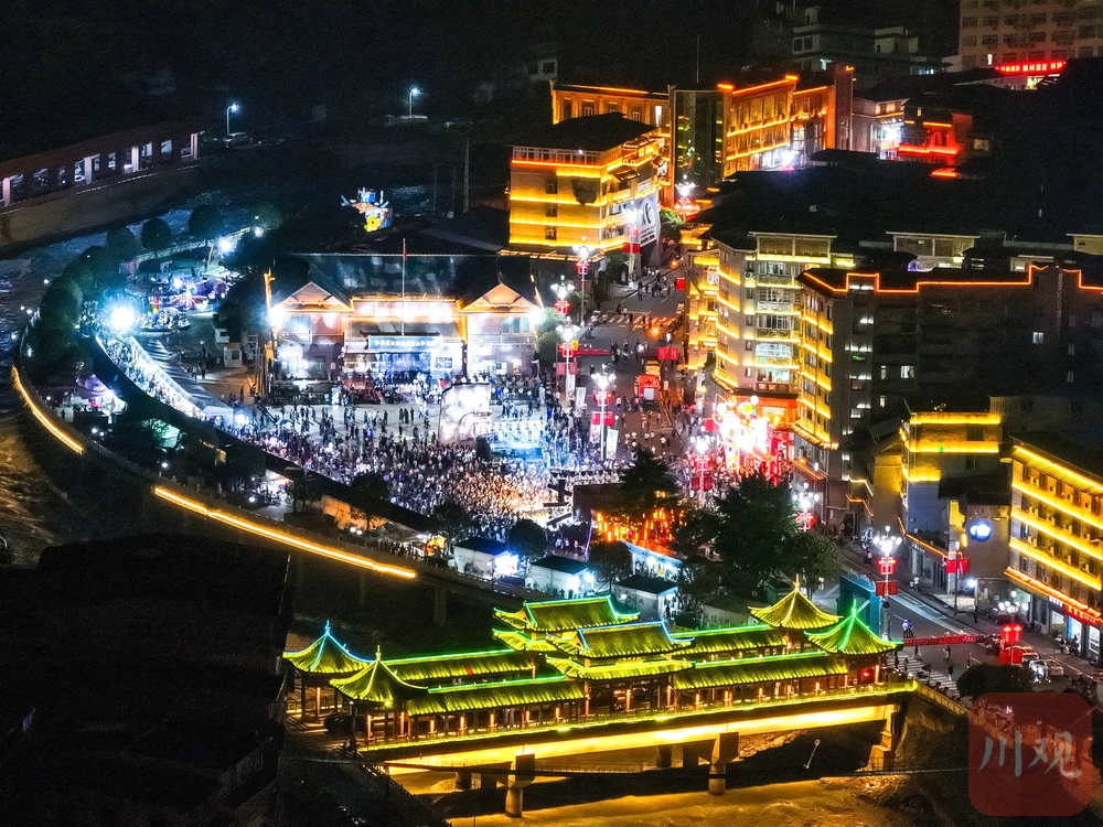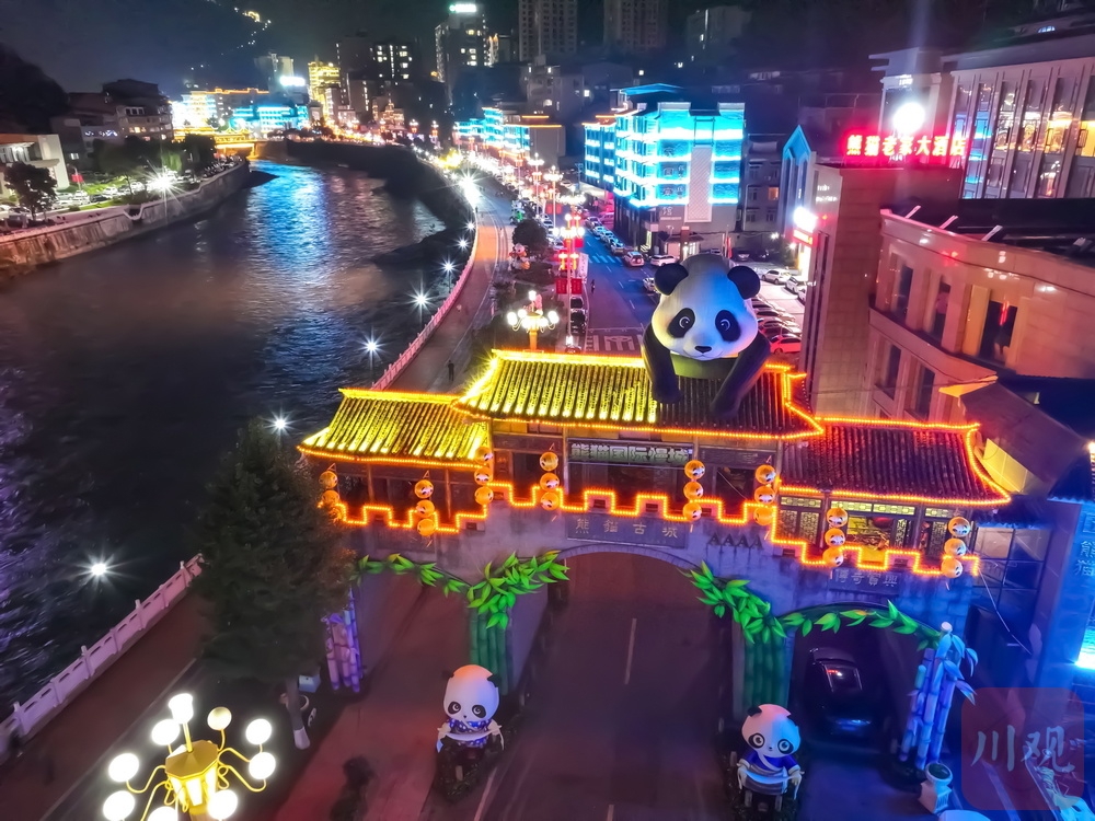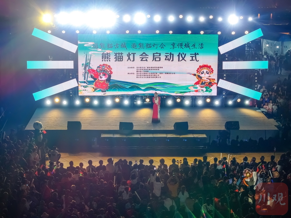 当晚7时30分许,现场嘉宾和市民、游客代表在穆坪镇红军广场共同点亮熊猫灯会。