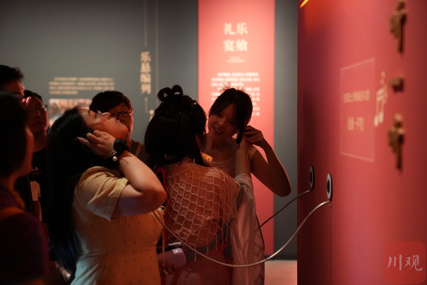 游客正在体验聆听刘贺墓出土青铜编纽钟试奏的《沧海一声笑》。