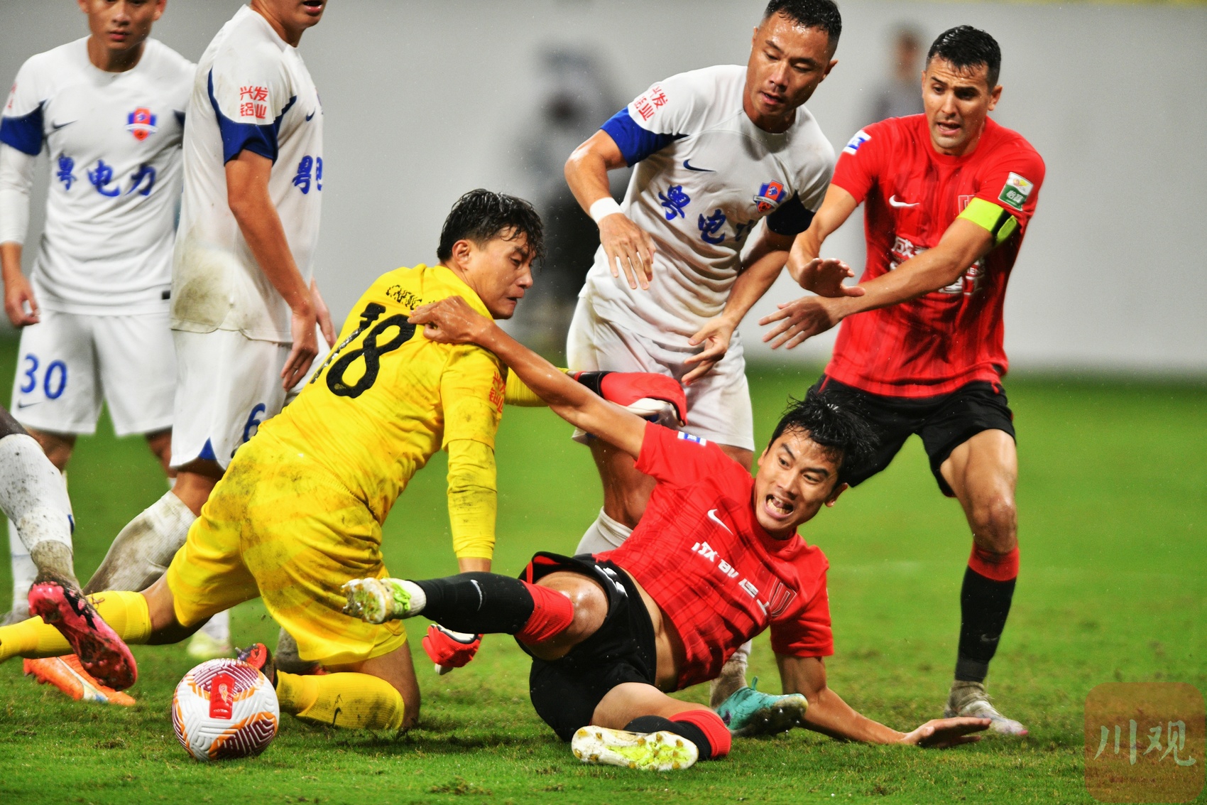 比赛争夺激烈(红衣为成都蓉城队员)。