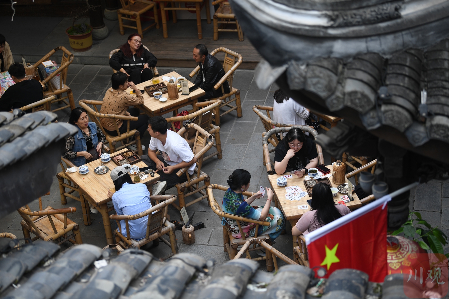 10月2日,国庆长假第二日,成都东门市井洋溢着喜庆氛围。游客们来此游园、逛非遗集市、品地道坝坝茶,尝鲜各类小吃......在热闹的氛围里享受成都特有的安逸与舒适,度过一个轻松休闲的假日。