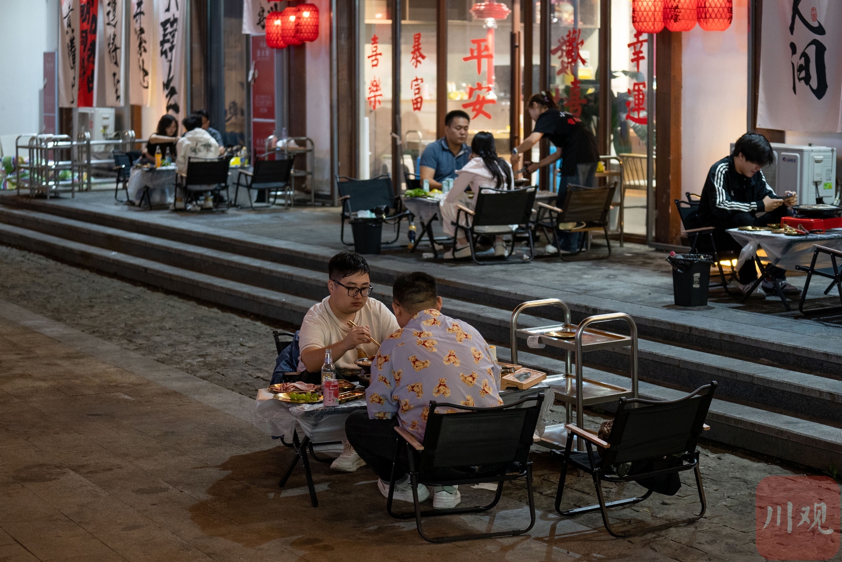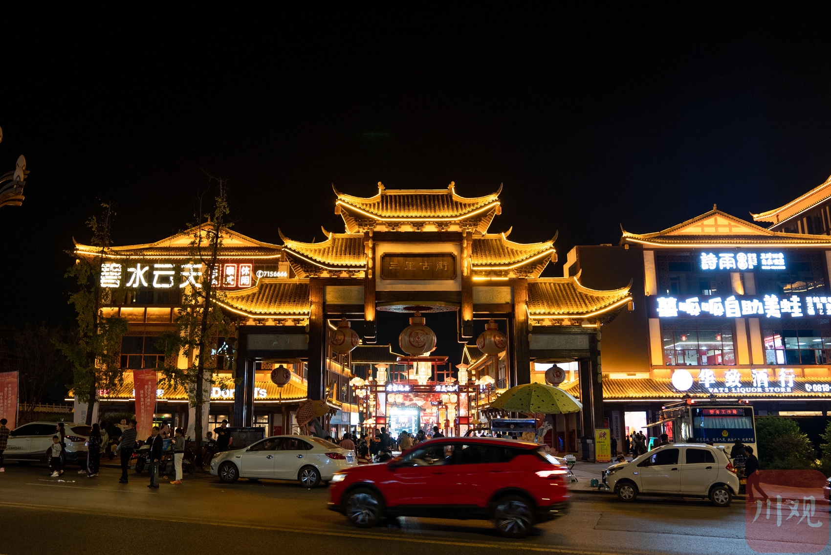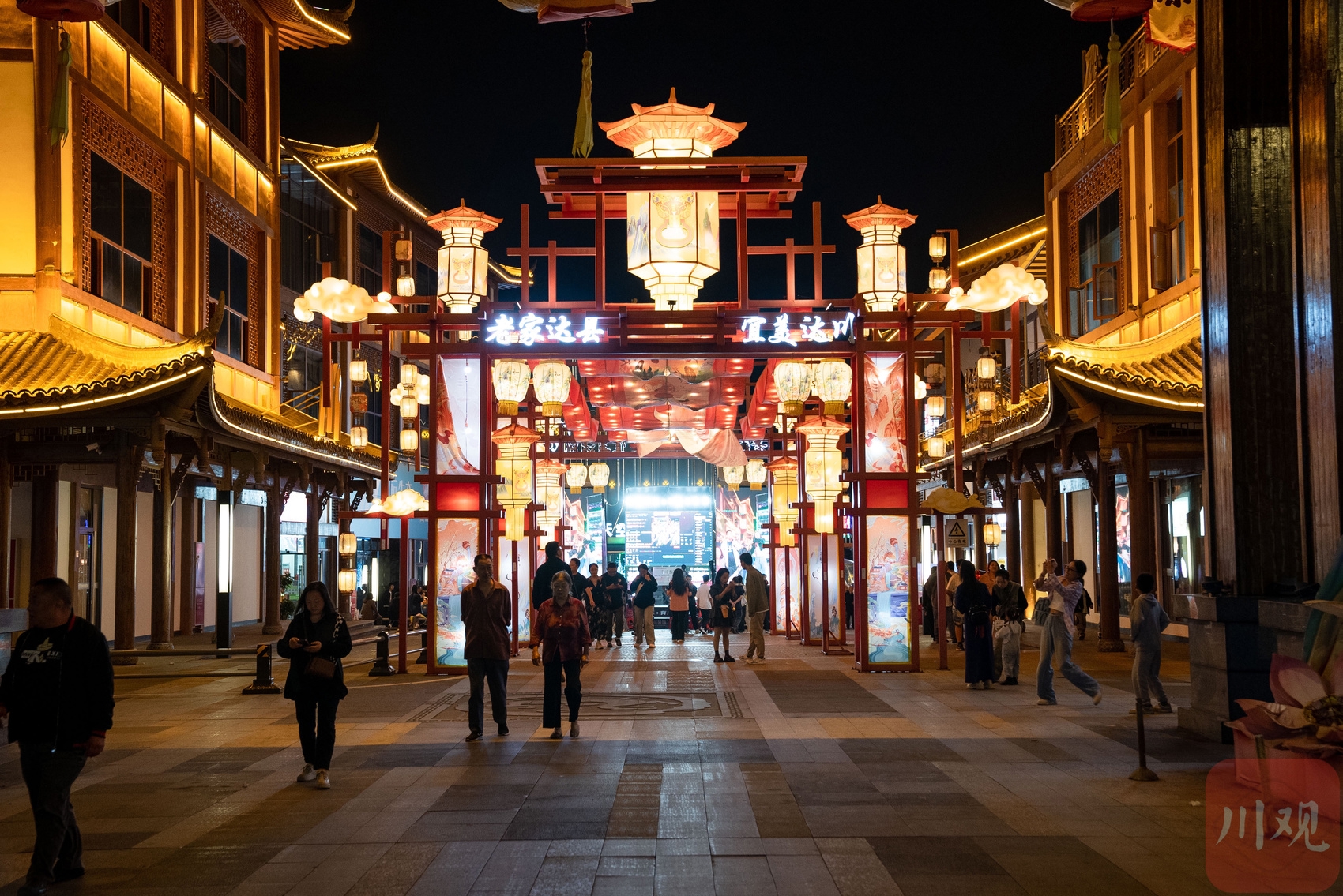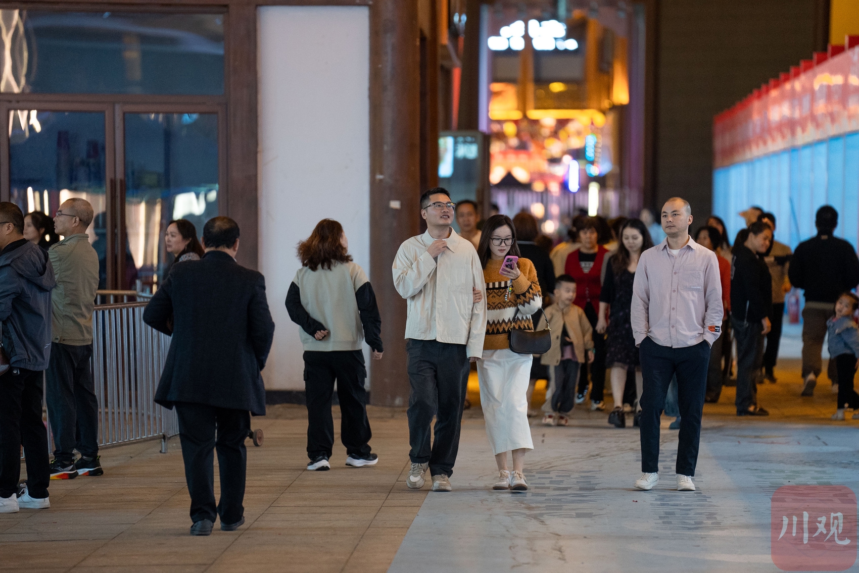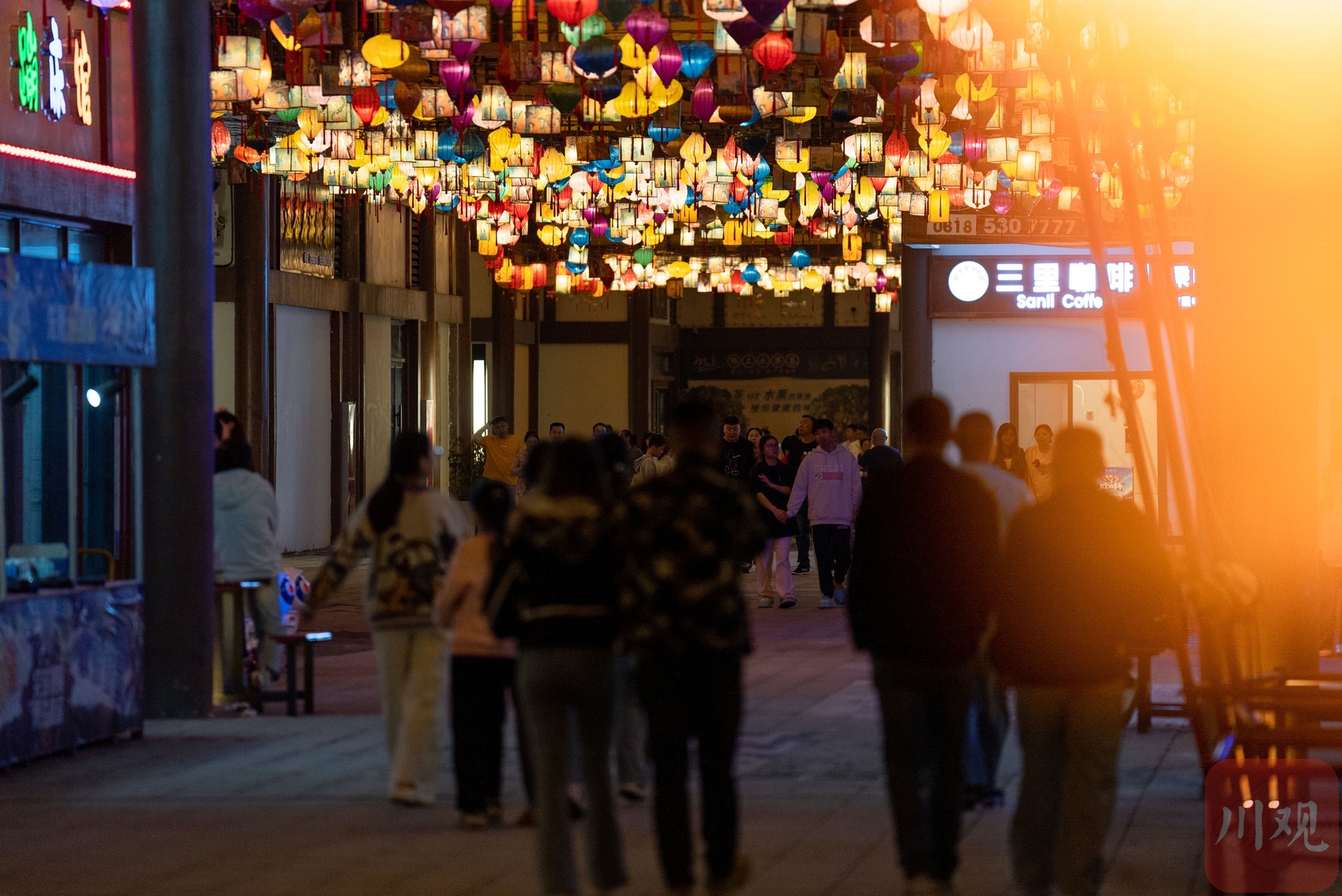 10月3日晚,达州市达川区的三里古街灯火辉煌,热闹非凡。国庆期间,这条古色古香的街道吸引了众多市民前来游玩,大家纷纷沉浸在浓厚的节日氛围中。