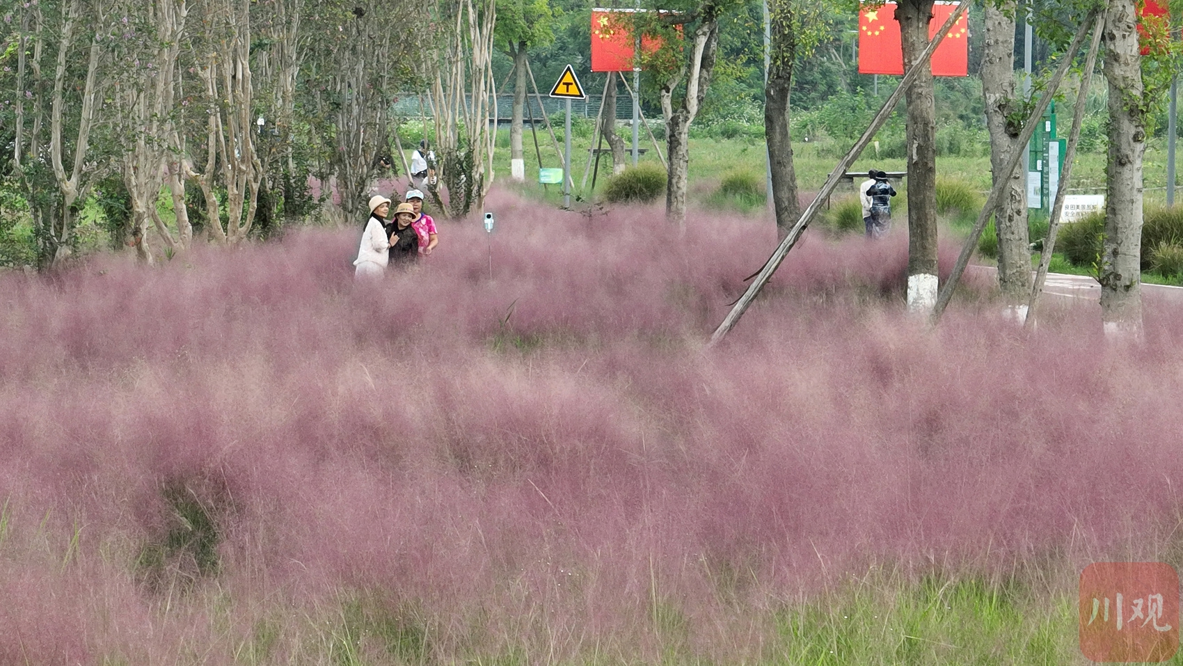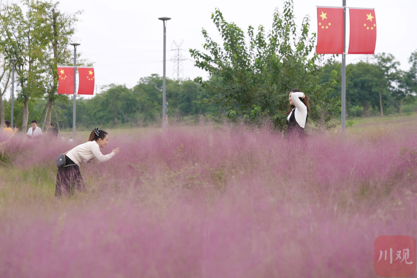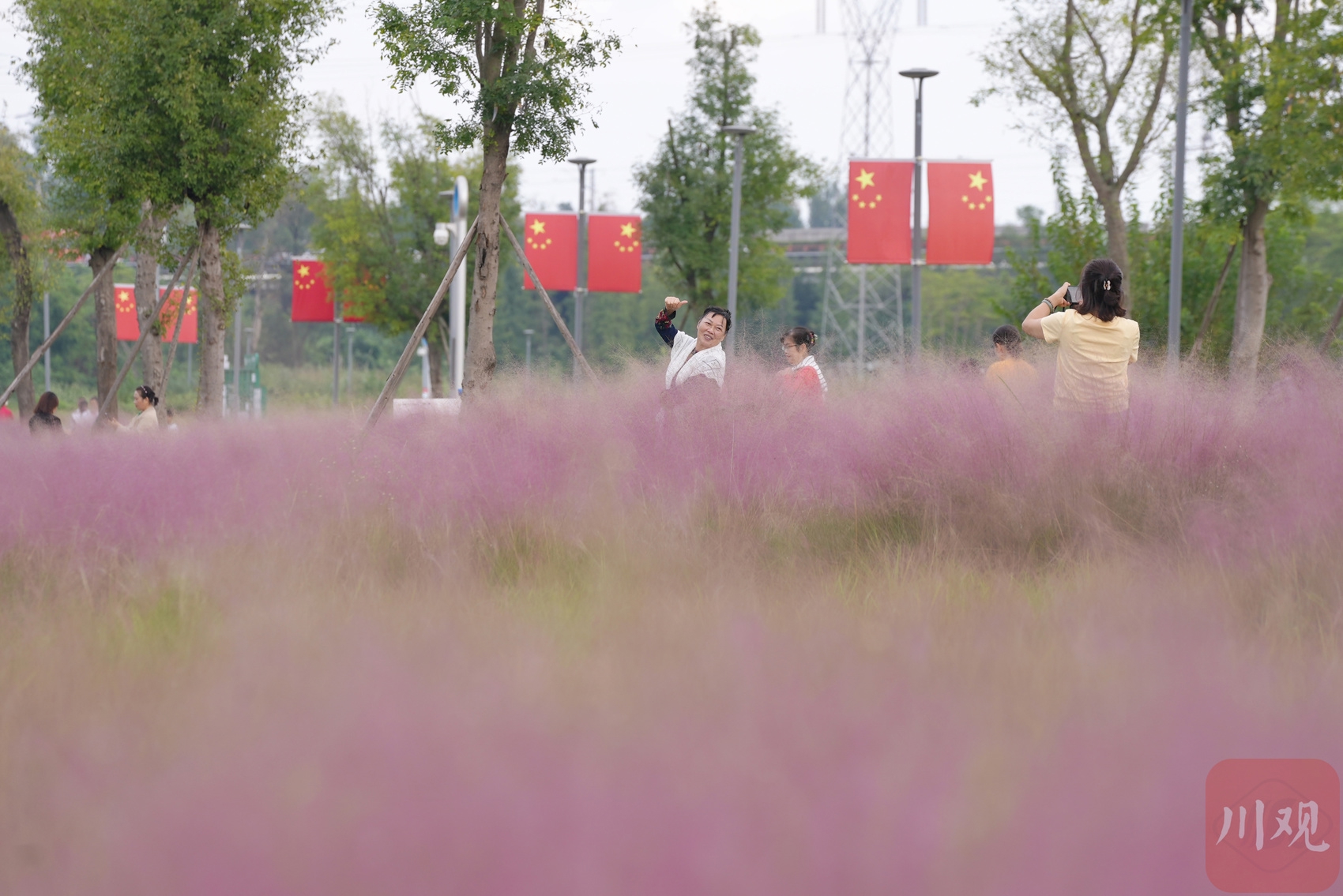 10月7日,龙泉驿区的玉石湿地公园内,粉黛乱子草正在盛开,一片片“粉色云雾”组成的“海洋”,很是壮观
