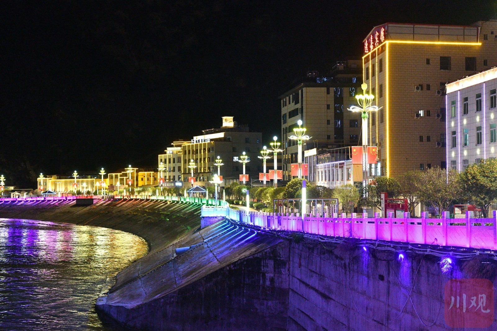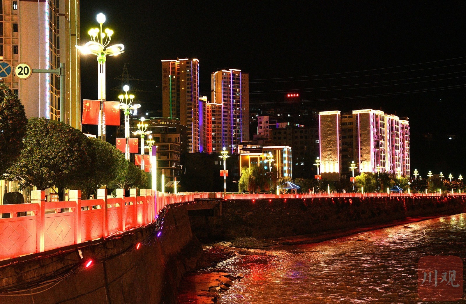 大金川河畔璀璨的灯光。