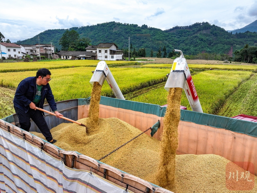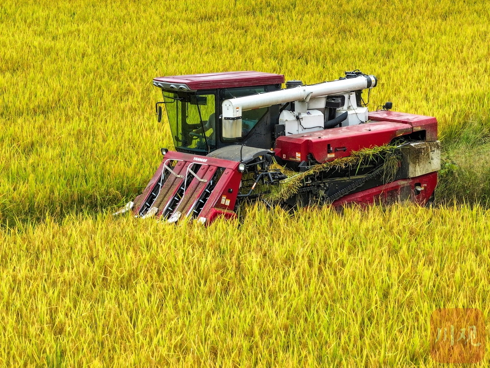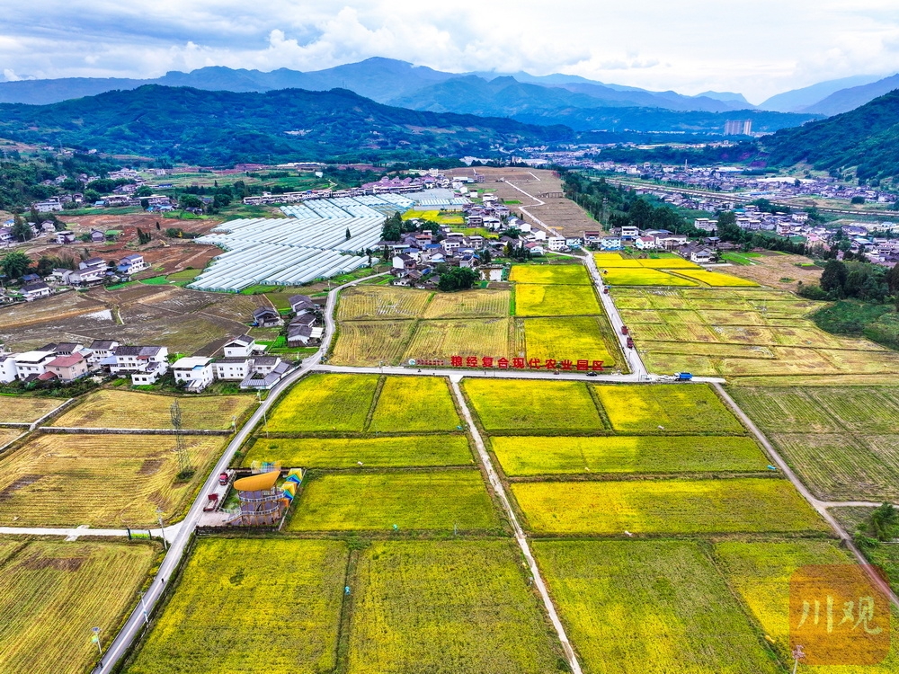 金秋十月,丰收正忙。10月11日,走进雅安市荥经县五宪镇,荥经县粮经复合现代农业园内,一片片成熟的水稻泛着金黄,沉甸甸的稻穗已经压弯了稻杆。