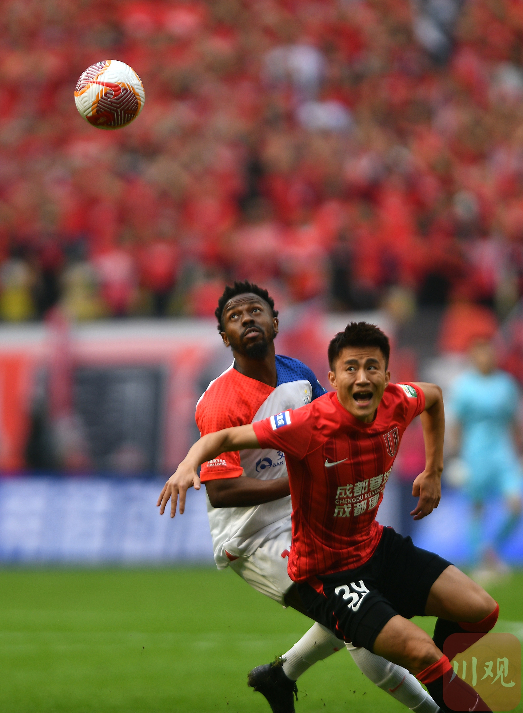 场上比赛紧张激烈。(红衣为成都蓉城队员)