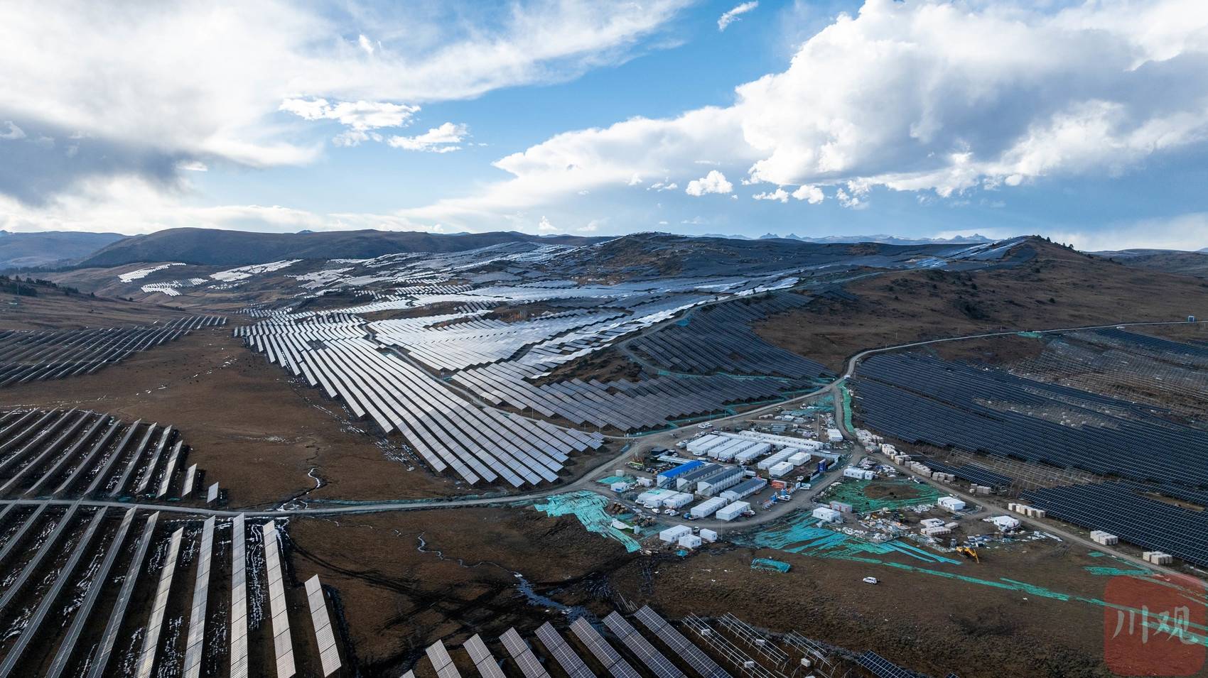正在建设中的华能四川能源开发有限公司道孚县亚日“1+N”项目Ⅰ标500MW光伏电站。