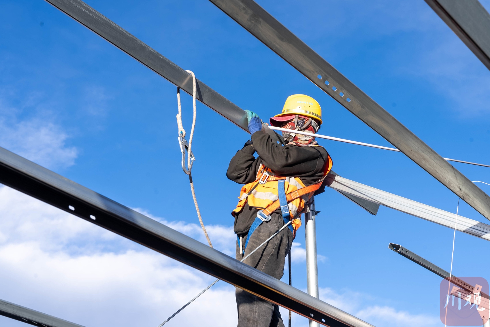 在亚日村,一座座被光伏板装饰的银色山峰在阳光下熠熠生辉,与远处的雪山相比毫不逊色。这里是正在建设中的华能四川能源开发有限公司道孚县亚日“1+N”项目Ⅰ标500MW光伏电站。为确保明年10月投入使用,电站正组织工人抓紧时间安装光伏板。