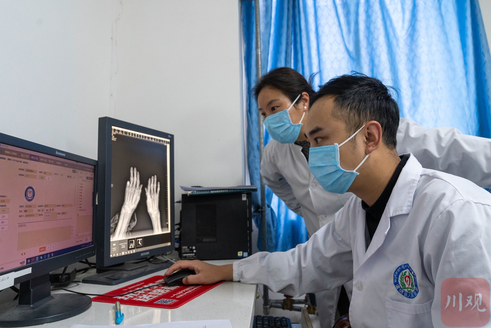 壤塘县人民医院放射科主任邹洪杰正在查看影像。