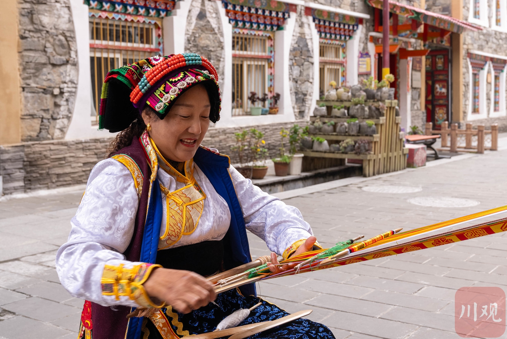 丘地村村民正在编织藏式腰带。