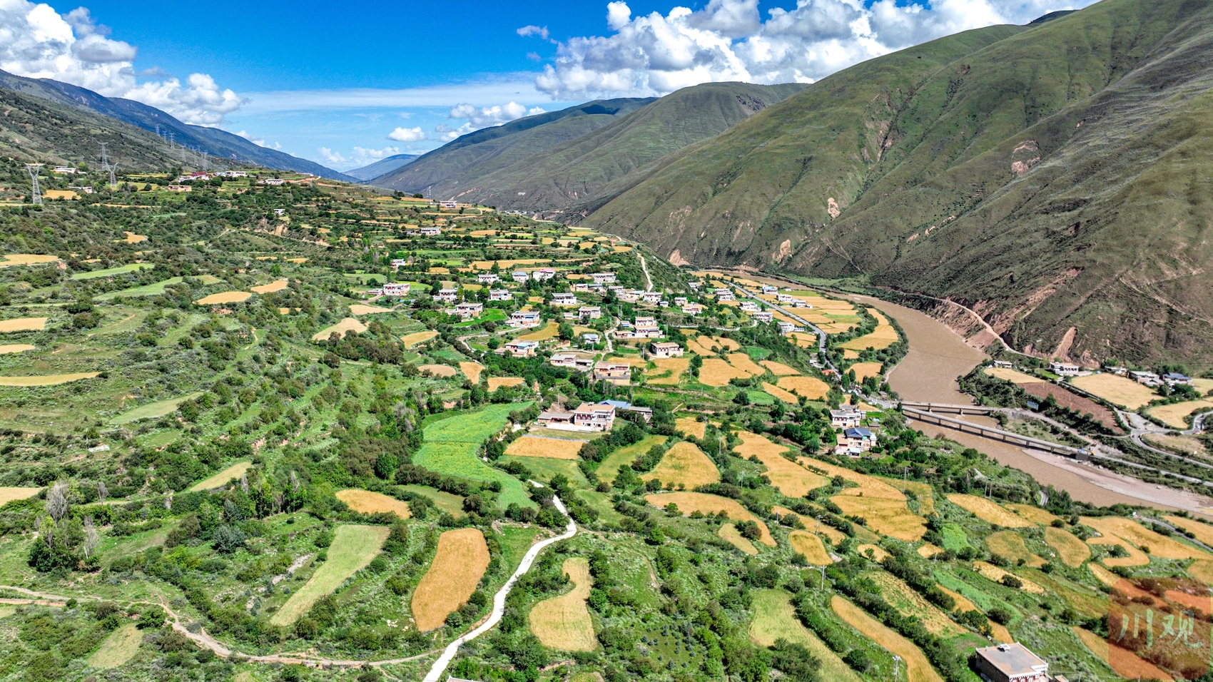 道孚县鲜水河畔的麦田。