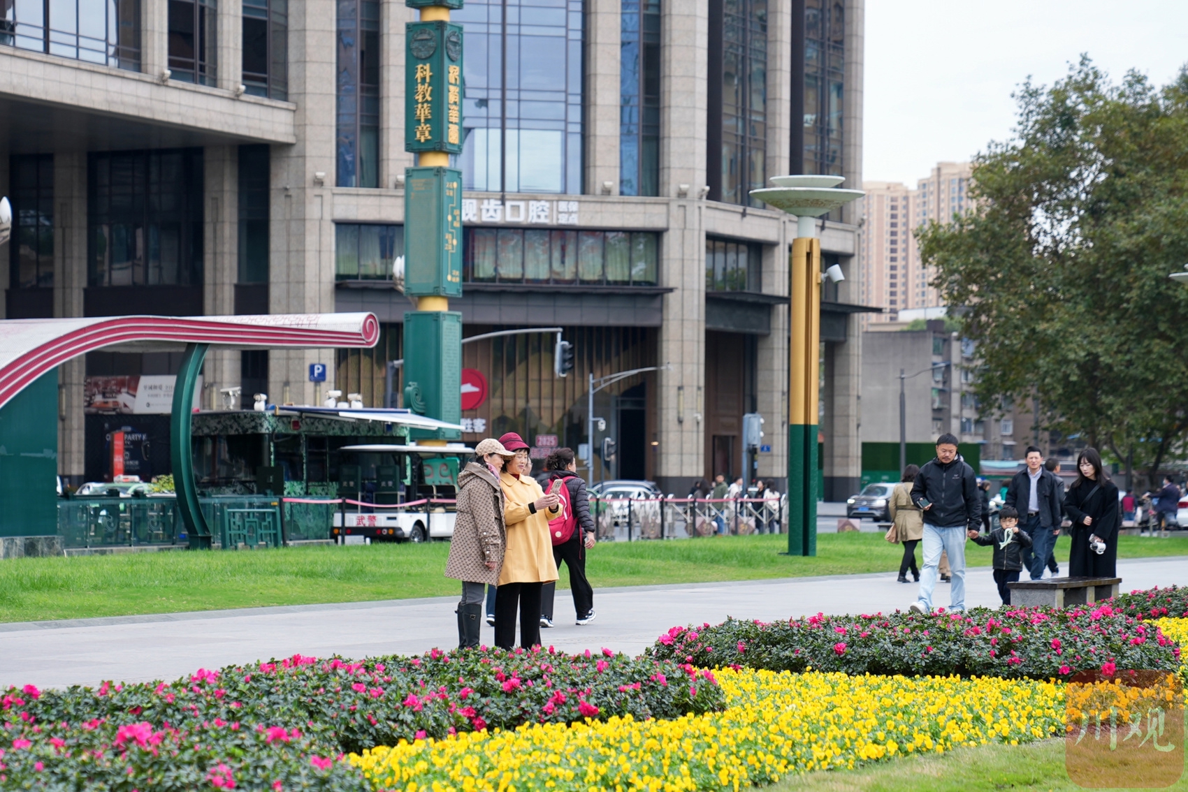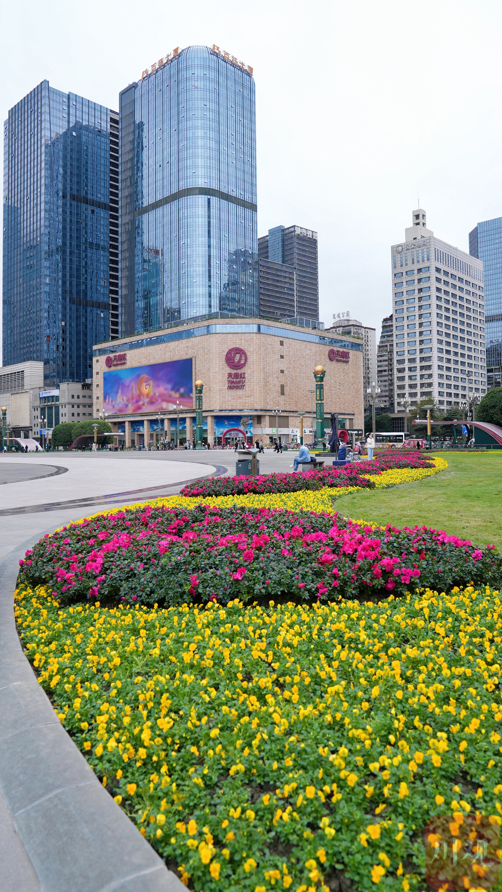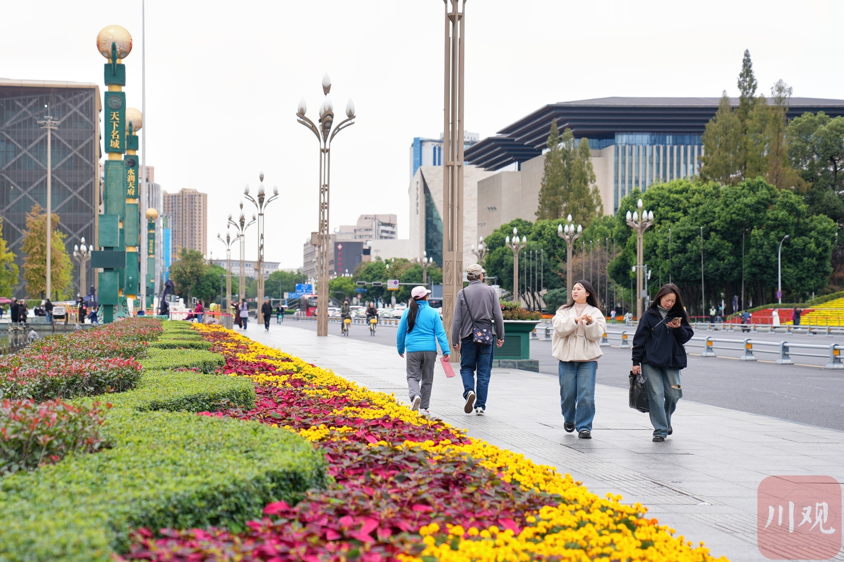 冬季换花开始,城市地标天府广场换上“新皮肤”
