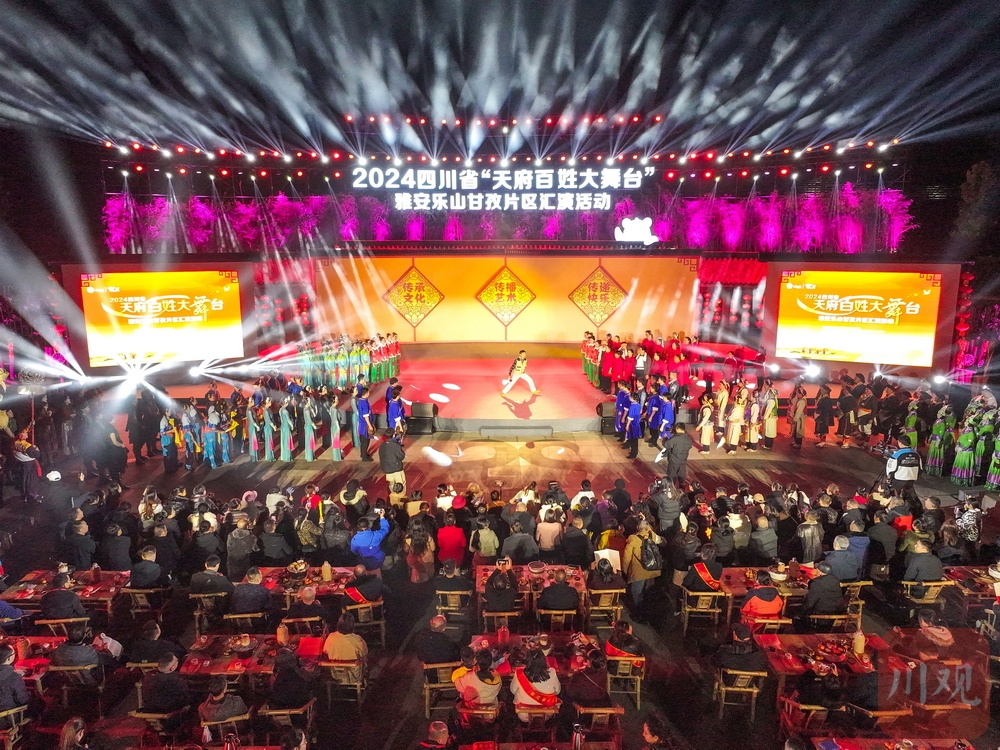 11月19日晚,2024四川省“天府百姓大舞台”雅安乐山甘孜片区汇演活动在雅安天全县举行。300余名艺术爱好者同台竞技,带着最饱满的激情载歌载舞,用歌声唱响乡村振兴,用舞姿表达对美好生活的向往。