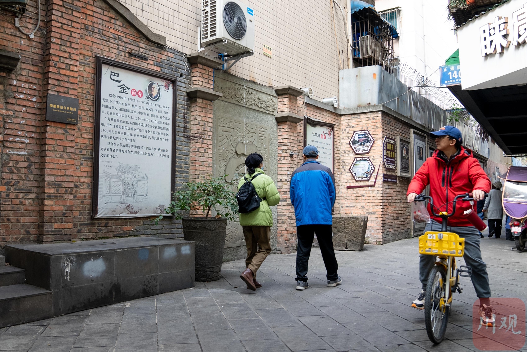 11月25日,四川成都,游客在观看位于正通顺街的巴金故居原址介绍信息。