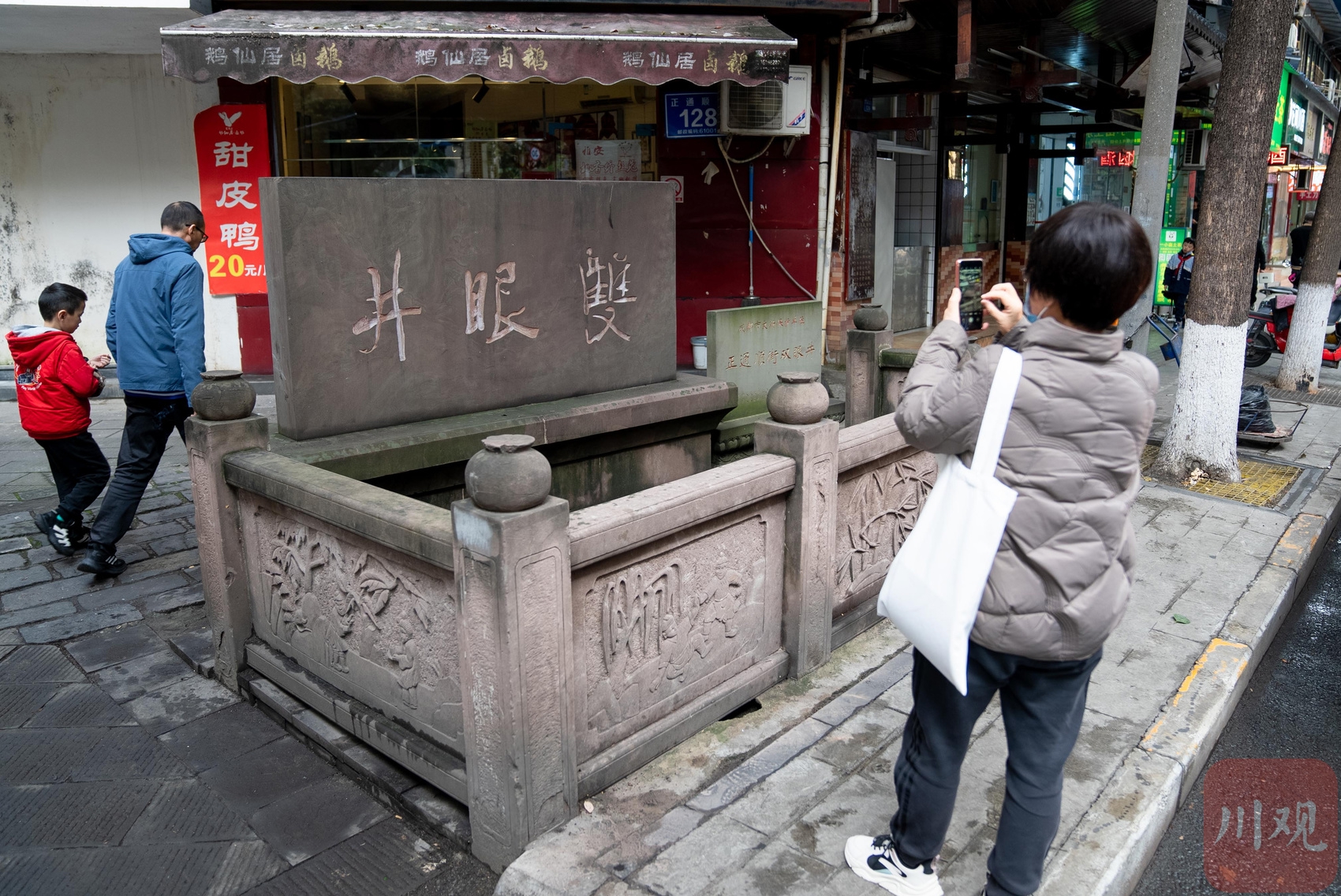 11月25日,游客在四川成都正通顺街的双眼井拍照打卡。