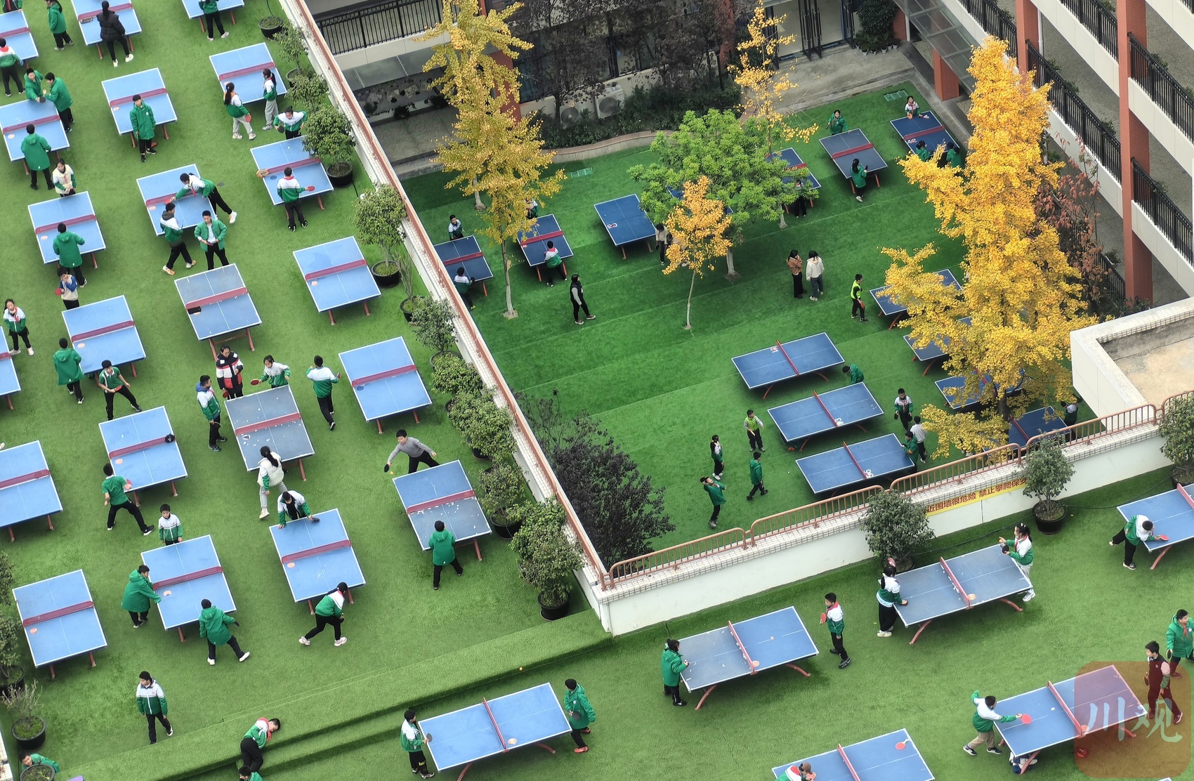 电子科技大学附属实验小学华泰校区楼顶和校园庭院内的乒乓球运动场。