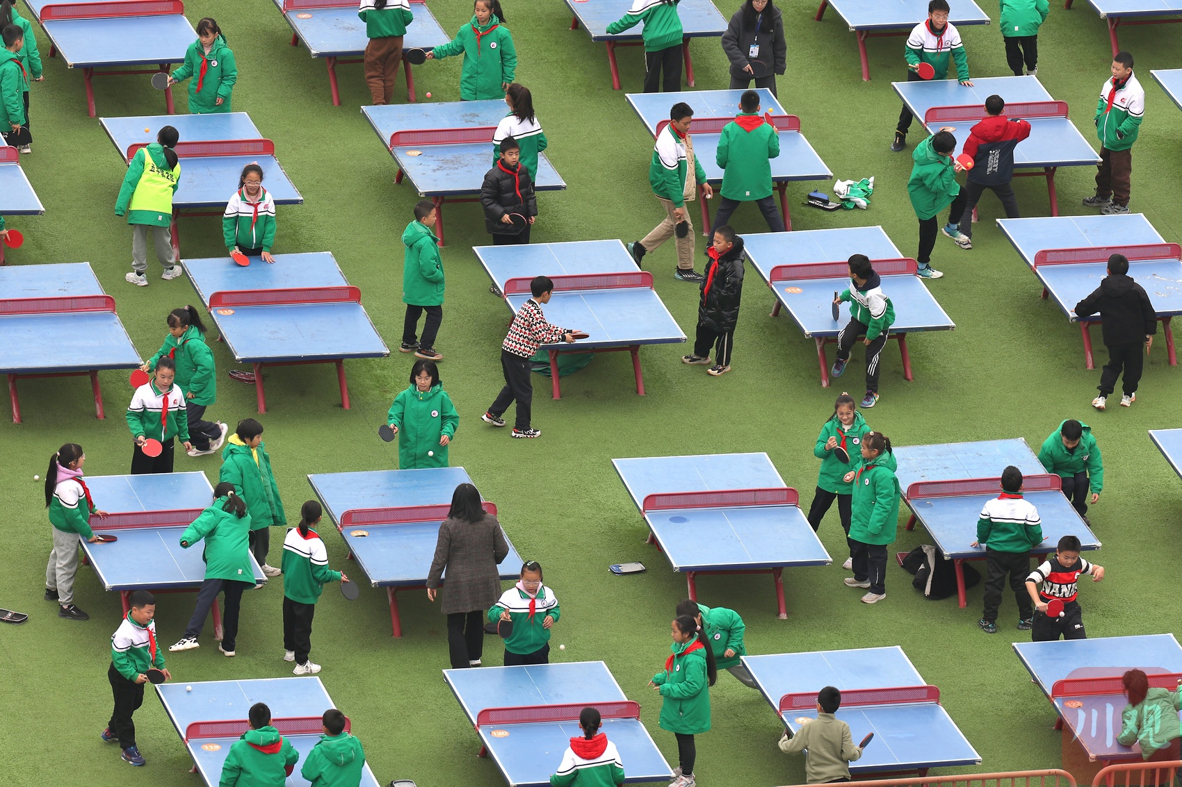 目前,电子科技大学附属实验小学五个校区共有7000多名学生,乒乓球桌从最初9张慢慢增加到现在829张。
