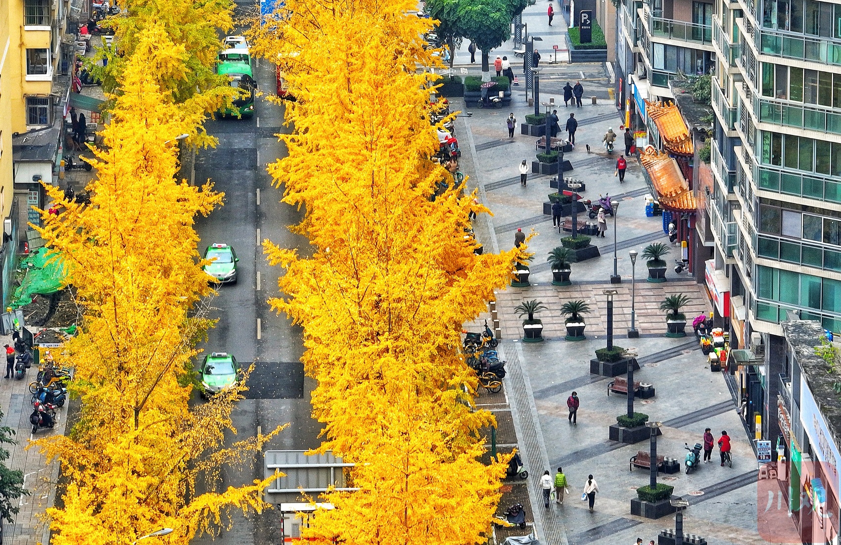 亮丽的金黄为冬日城区街道添彩。