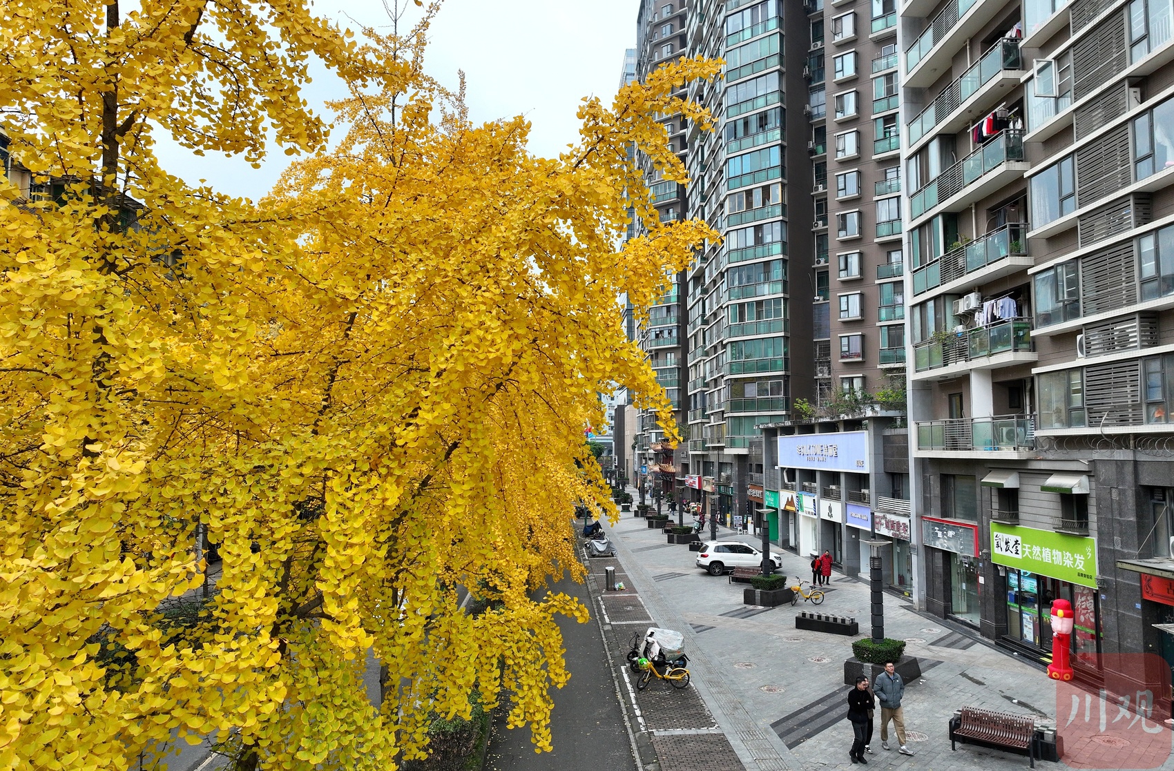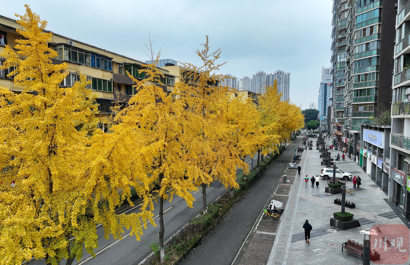 12月12日,尽管近日都是持续的阴天,但成都市区街道金黄色的银杏,为这座城市平添了几分冬日浪漫。