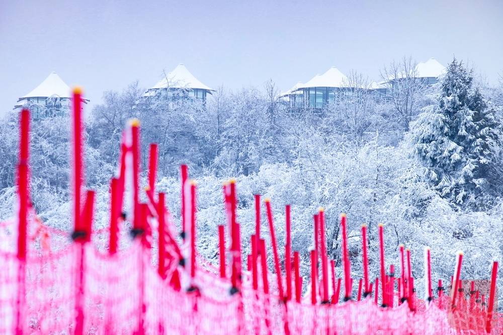 走进隆冬时节的王岗坪景区,草甸、森林皆被皑皑白雪妆点,天地间银装素裹一片静谧悠然,宛如遗落人间的冰雪童话世界。